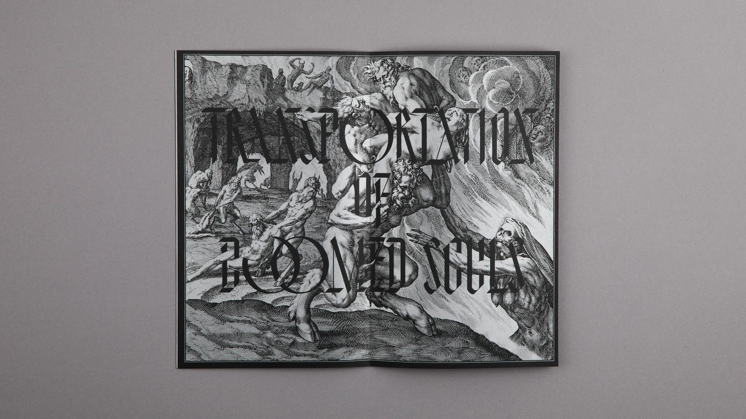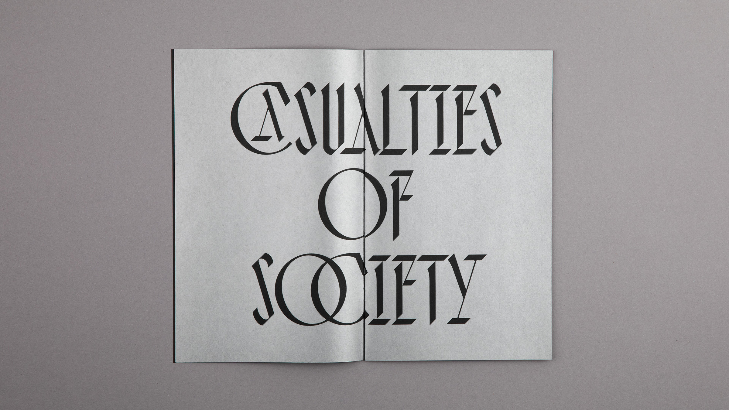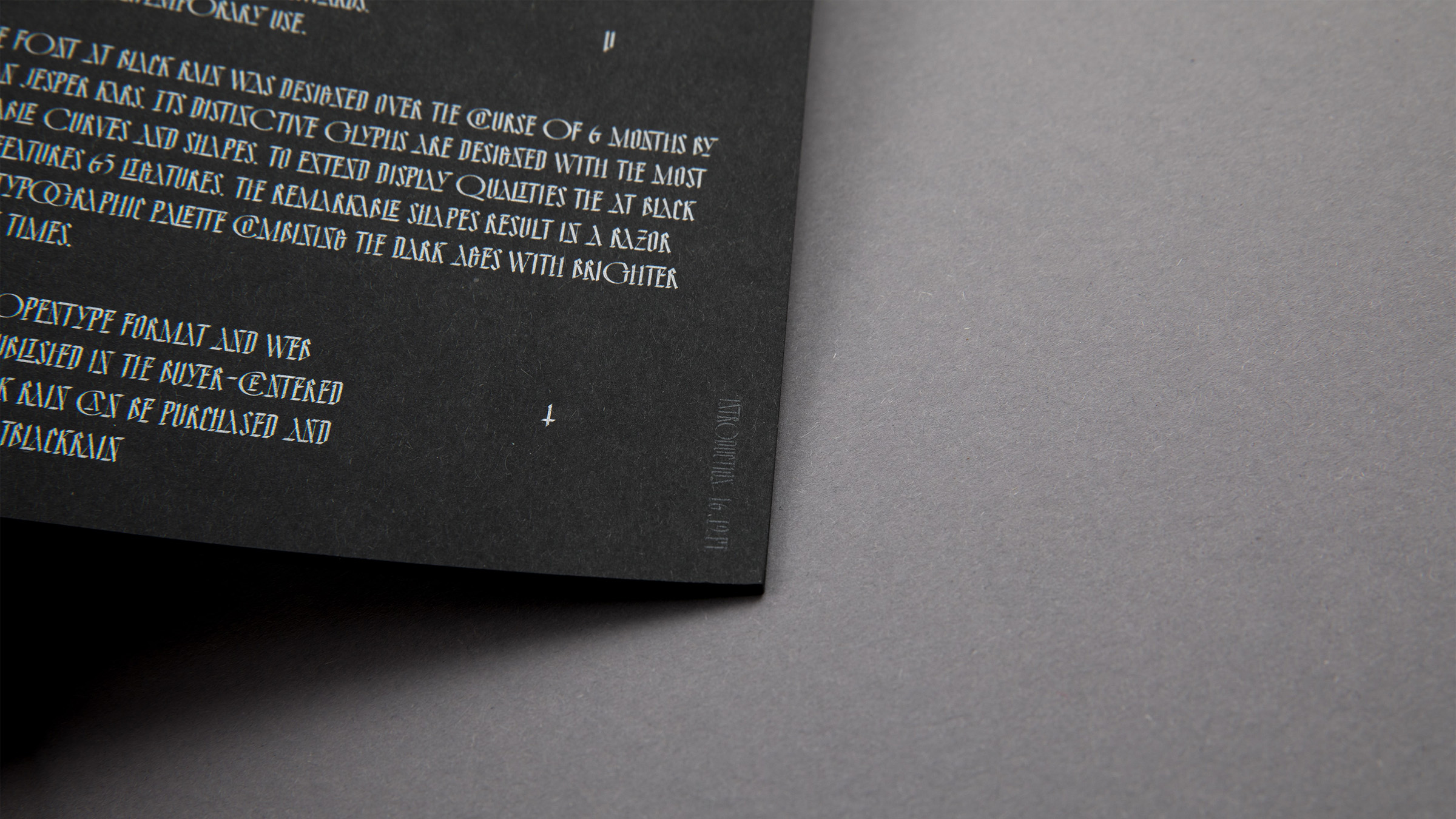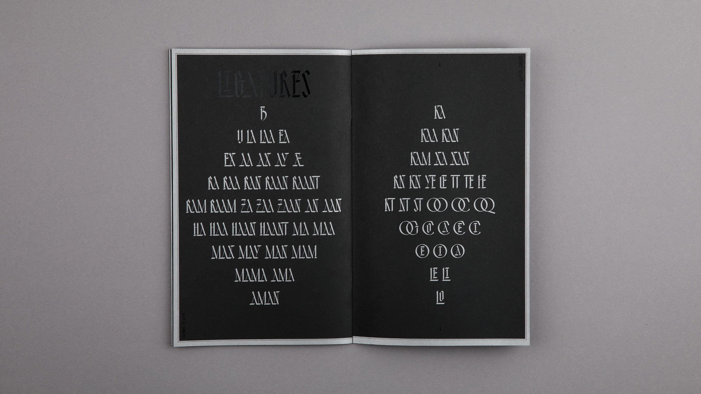 The font AT Violent Youth (previously known as AT Black Rain) was designed over the course of 6 months during my internship at ATTAK. Its distinctive glyphs are designed with the most suitable curves and shapes. To extend display qualities the AT Black Rain features 65 ligatures. The remarkable shapes result in a razor sharp typographic palette combining the dark ages with brighter modern times. Printed with black and silver ink on black paper.