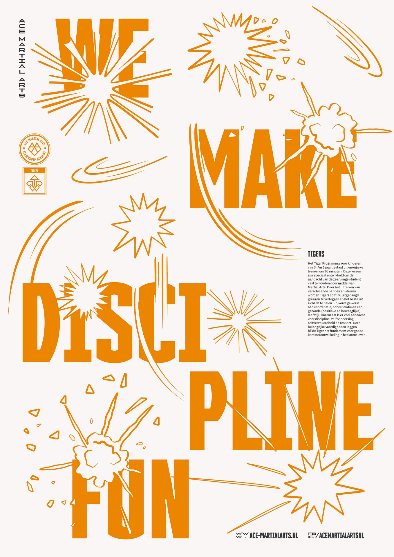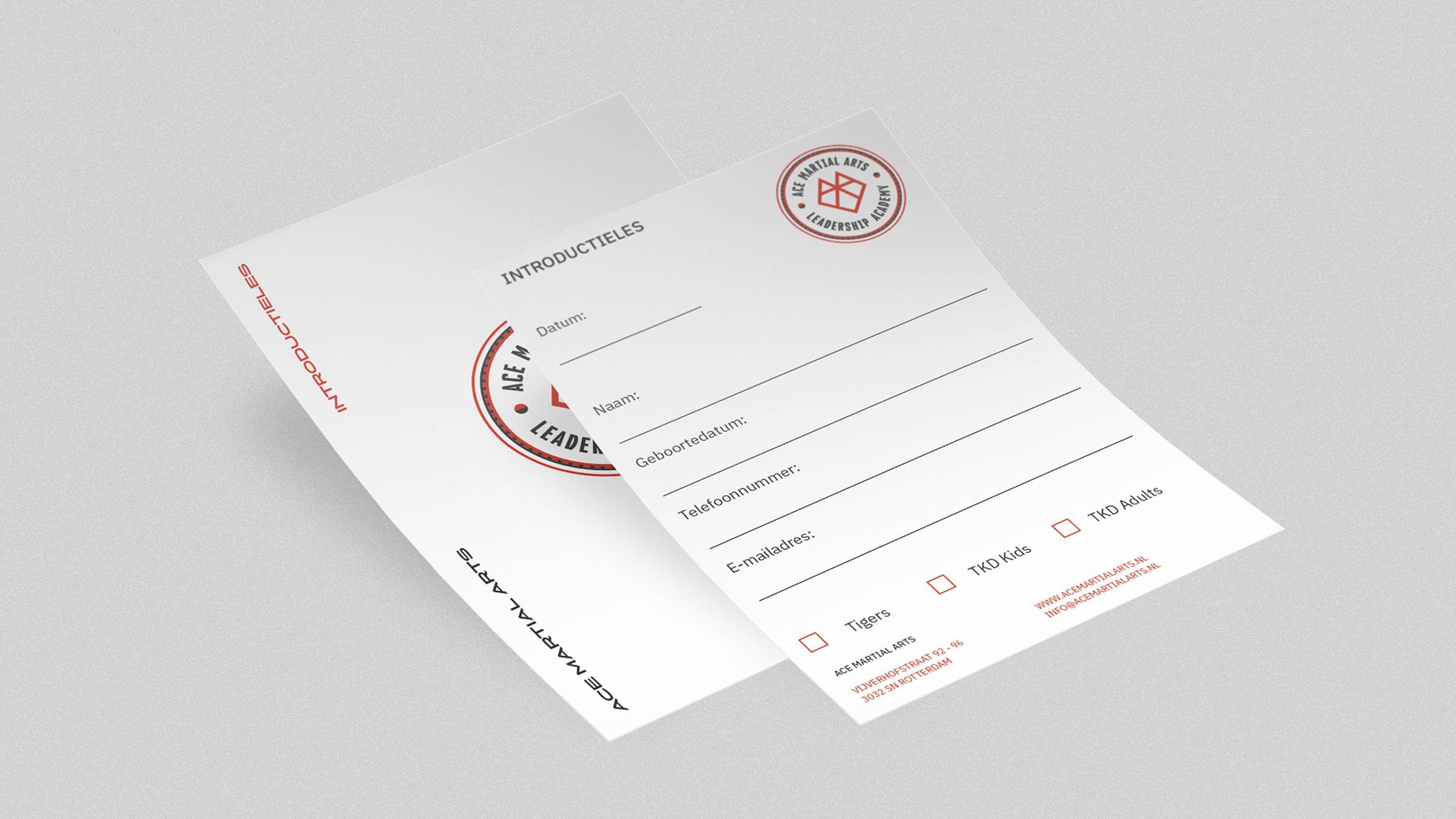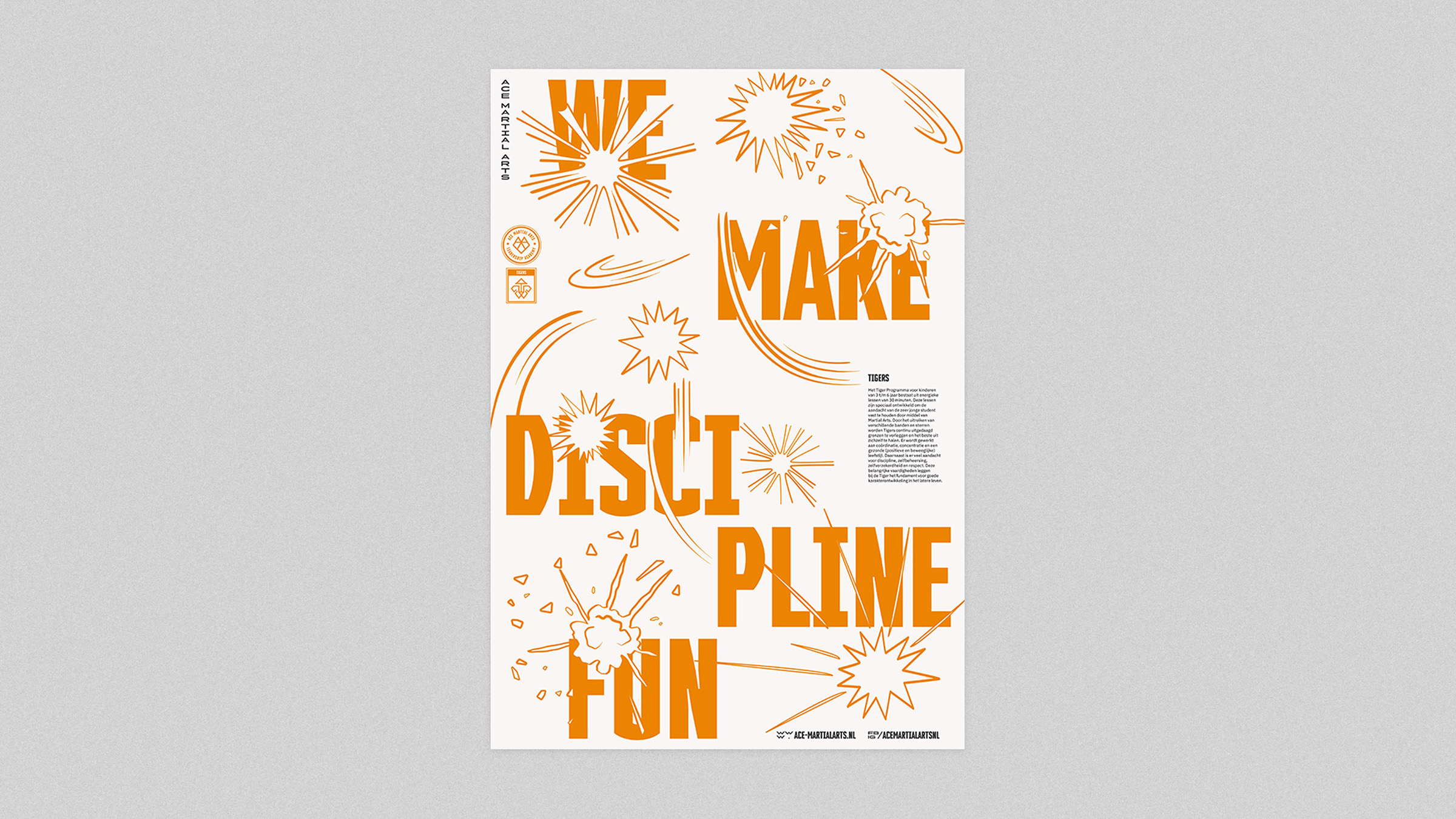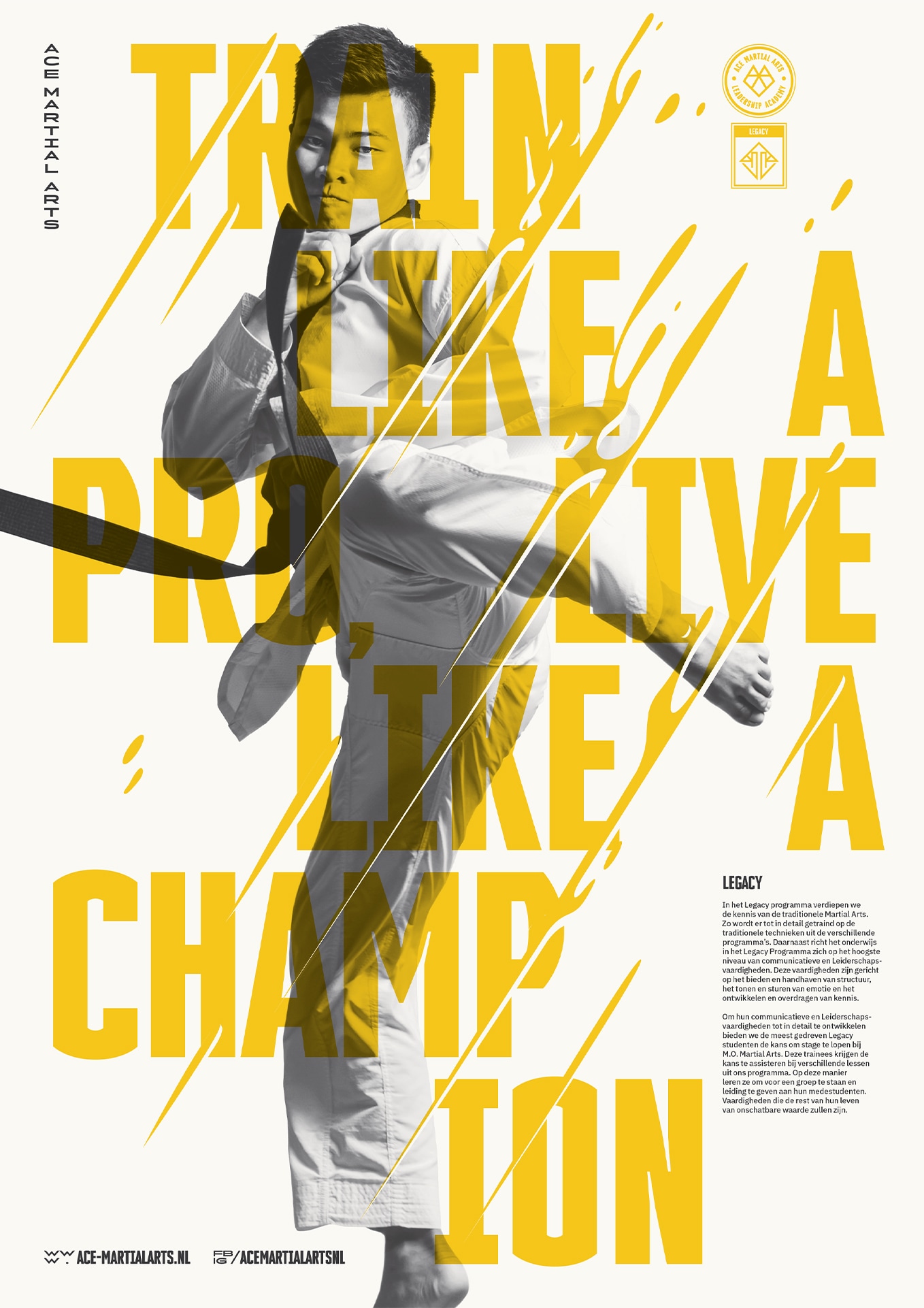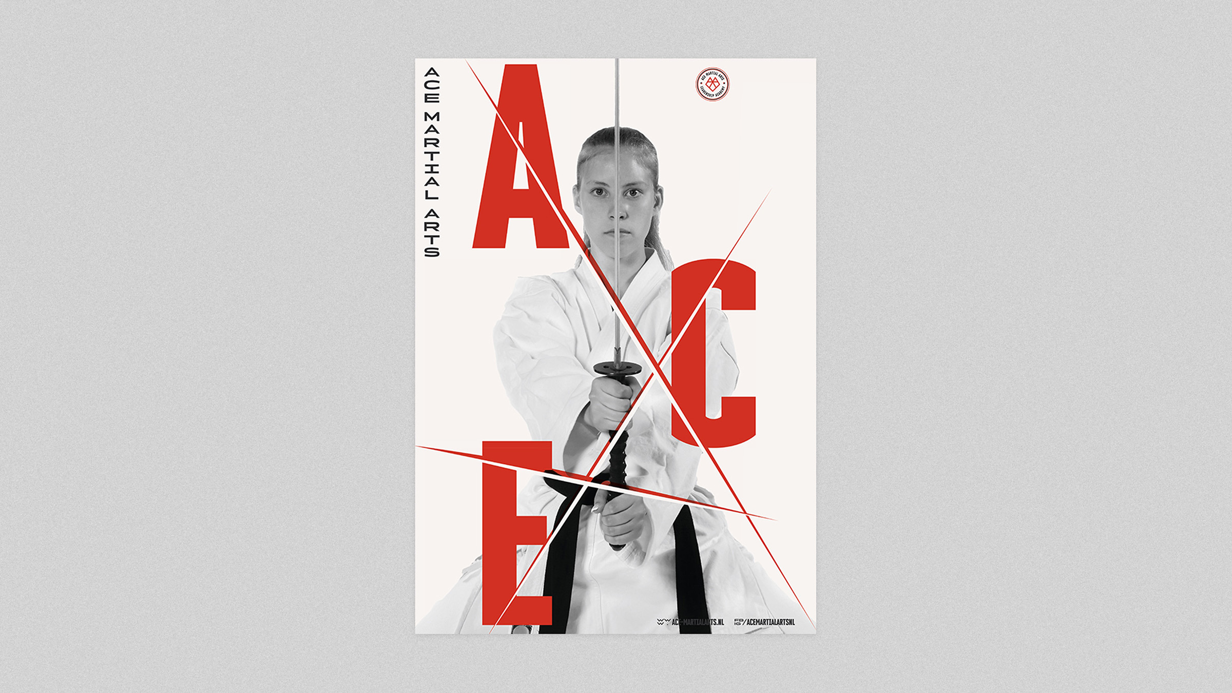 ACE Martial Arts is a Martial Arts studio based in Rotterdam. For their new name, a visual identity was developed ranging from logos to signage. The logos were inspired by old traditional stamps and spirit animals. For the posters a more expressionist visual language was created to drag the attention of the public. The illustrative layers on top of the images suggest the impact of Martial Arts.