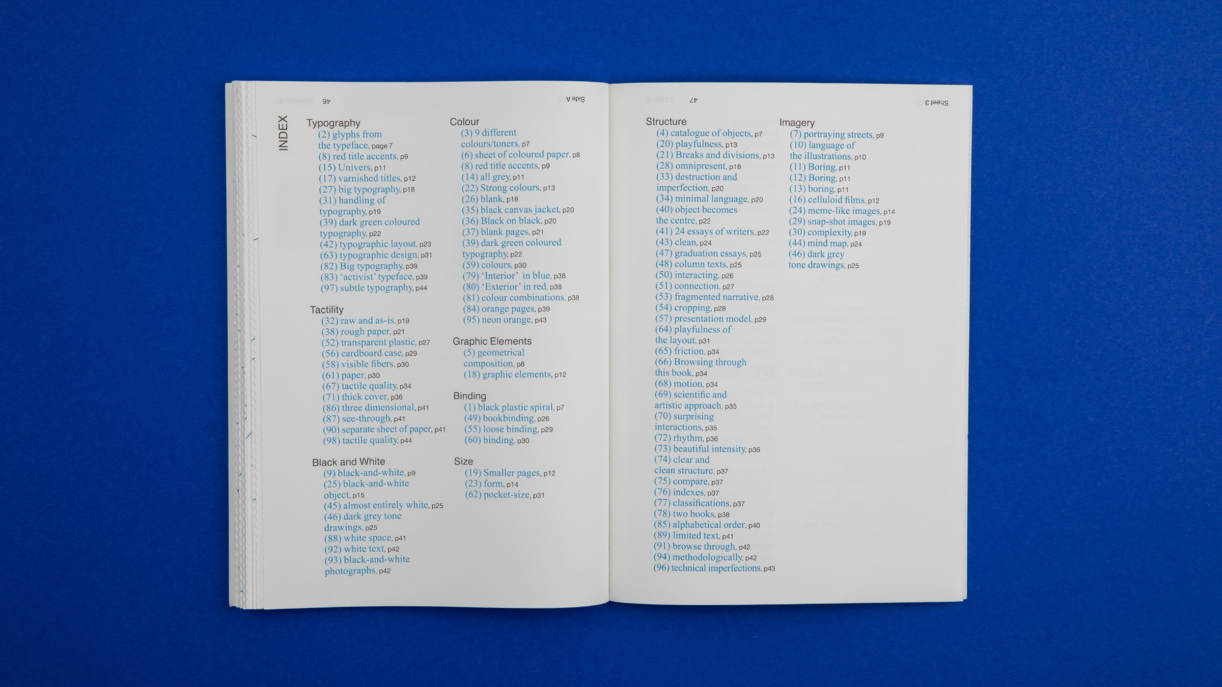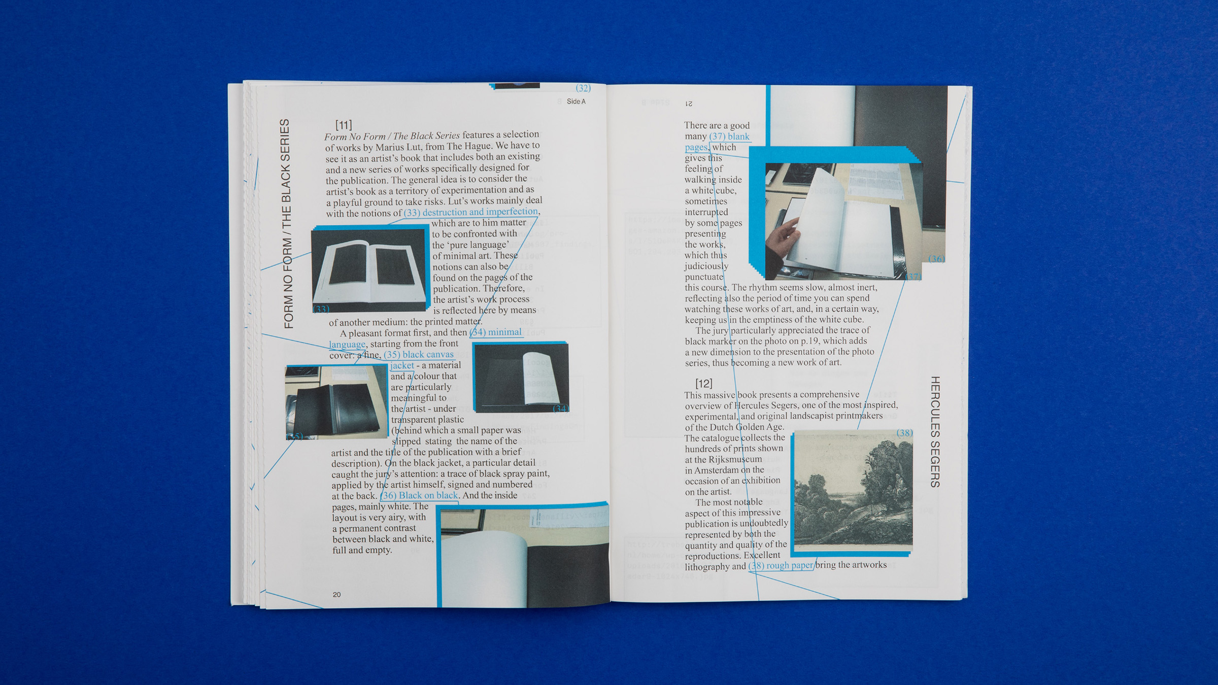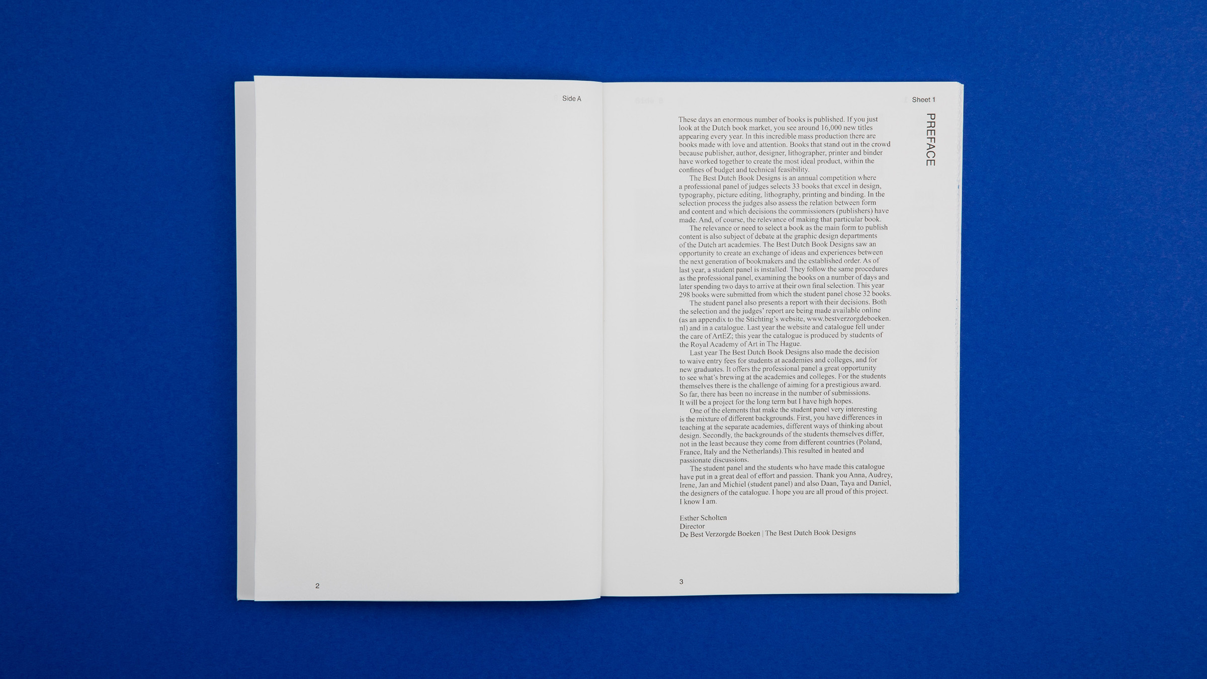 Looking at the selected books, a certain pattern appears: a book is not just a source of information, but an object. With it’s image-based editorial approach, tactility, choice of paper, typography and final presentation, the selection of 2016 is telling a lot about how our perception of printed matter is being influenced by the electronic media. The catalogue was displayed at the Stedelijk Museum Amsterdam amongst other books as part of the Best Dutch Book Designs 2016.