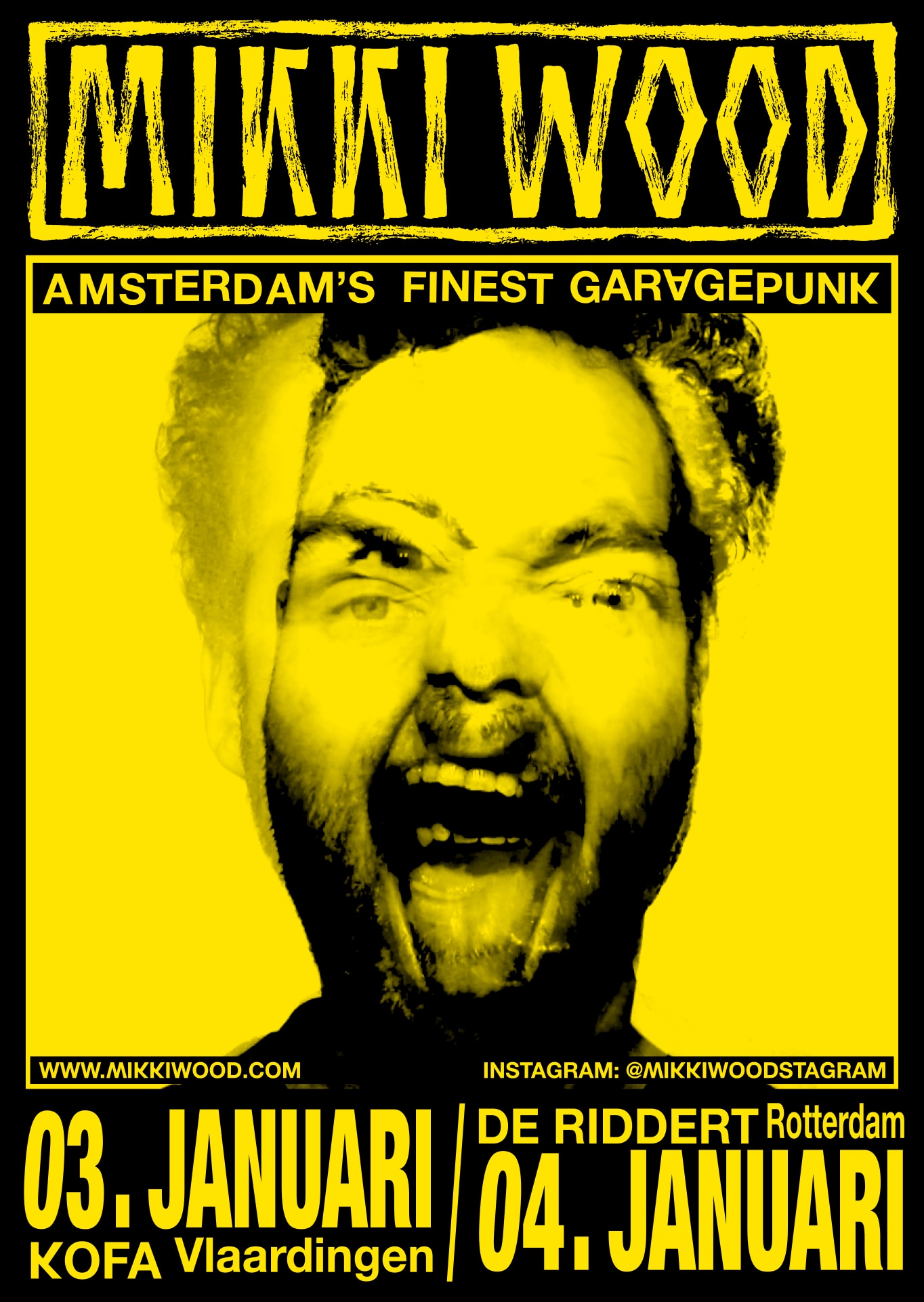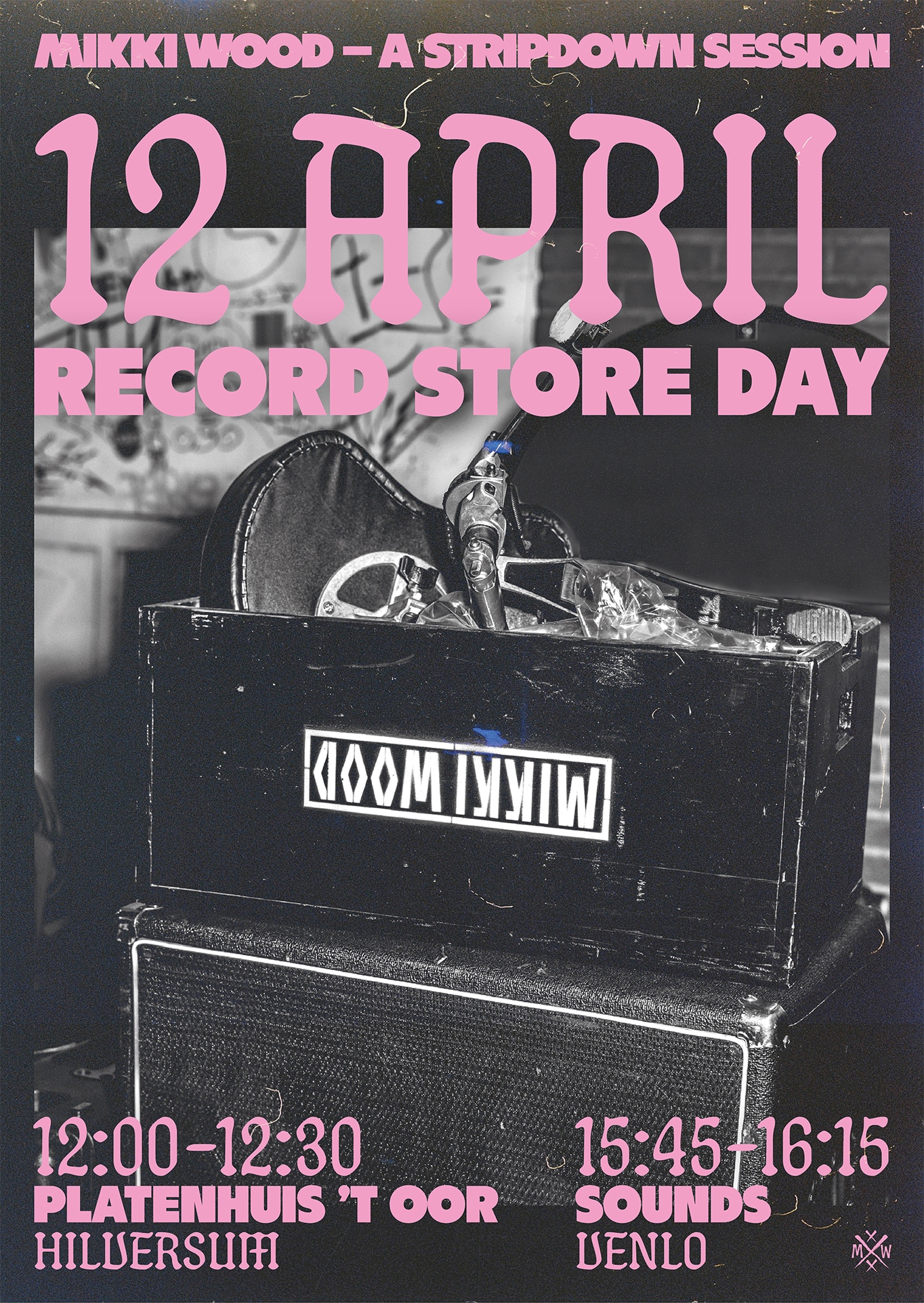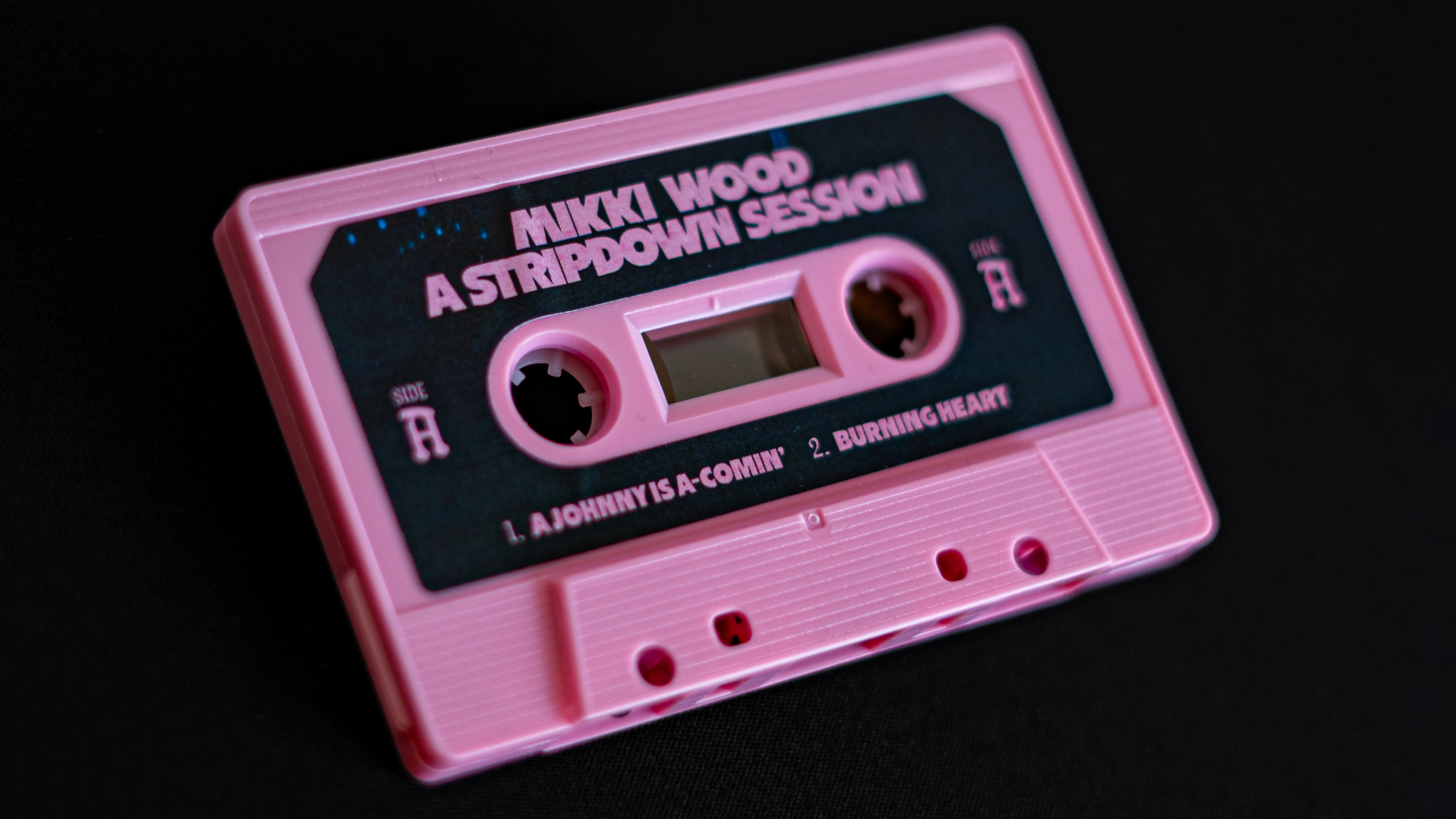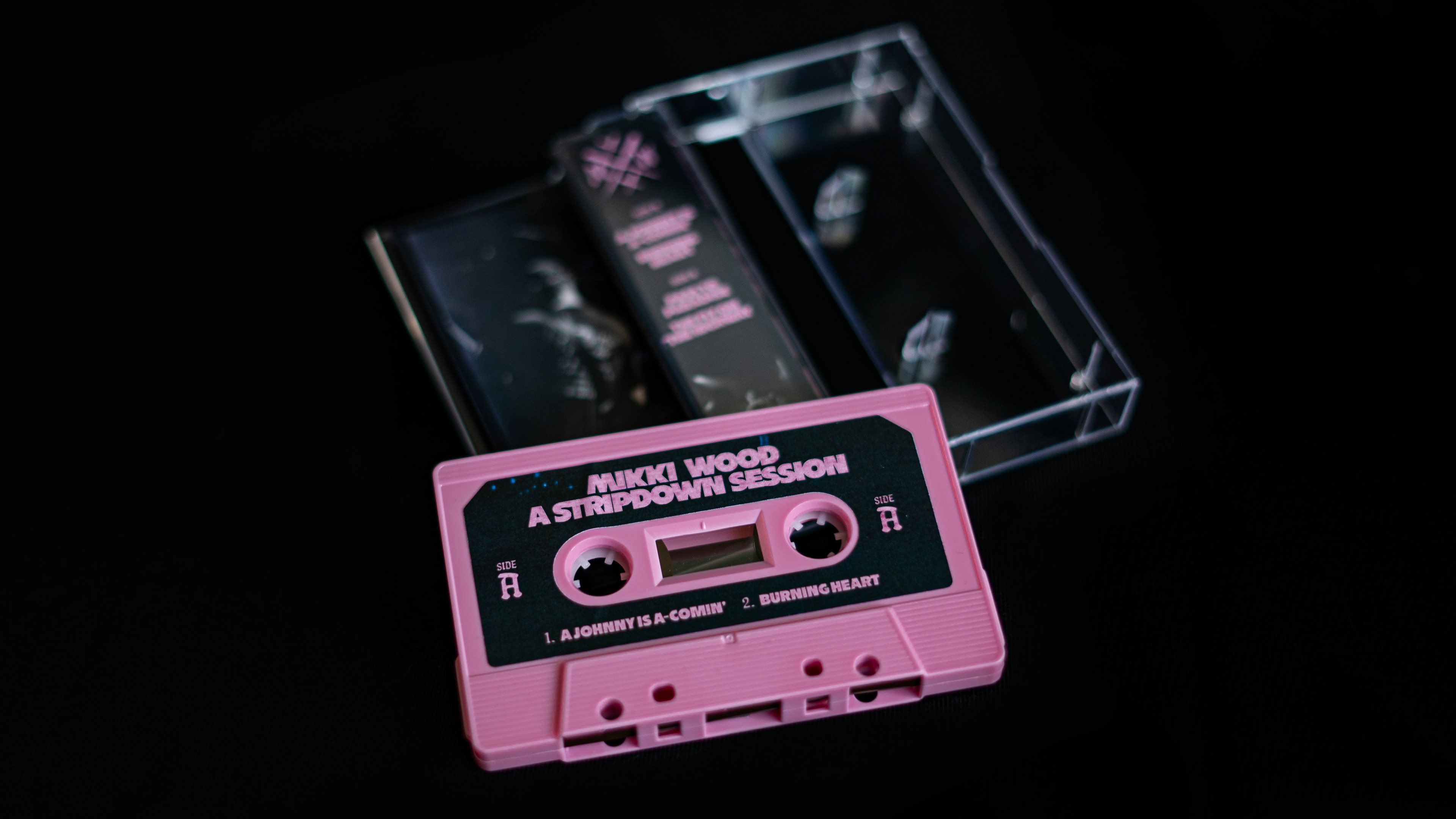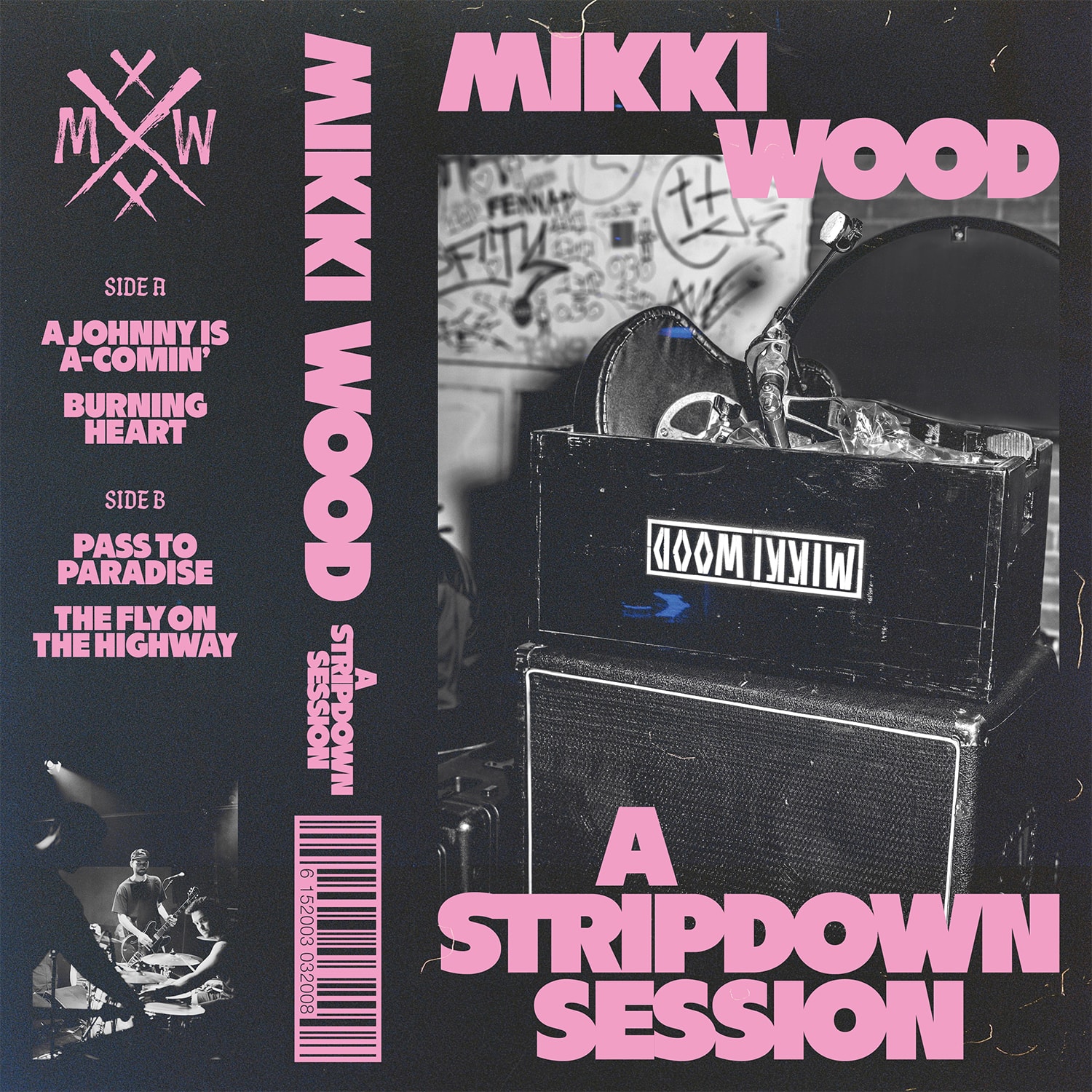 Artwork for Mikki Wood's acoustic EP on cassette. The EP features 4 stripped-down versions of songs from their first single “Mikki Wood” and their debut album “High on the Moon”. During their one-day-tour through the Netherlands, a limited amount of cassettes have been produced and sold during the Record Store Day on the 12th of April.