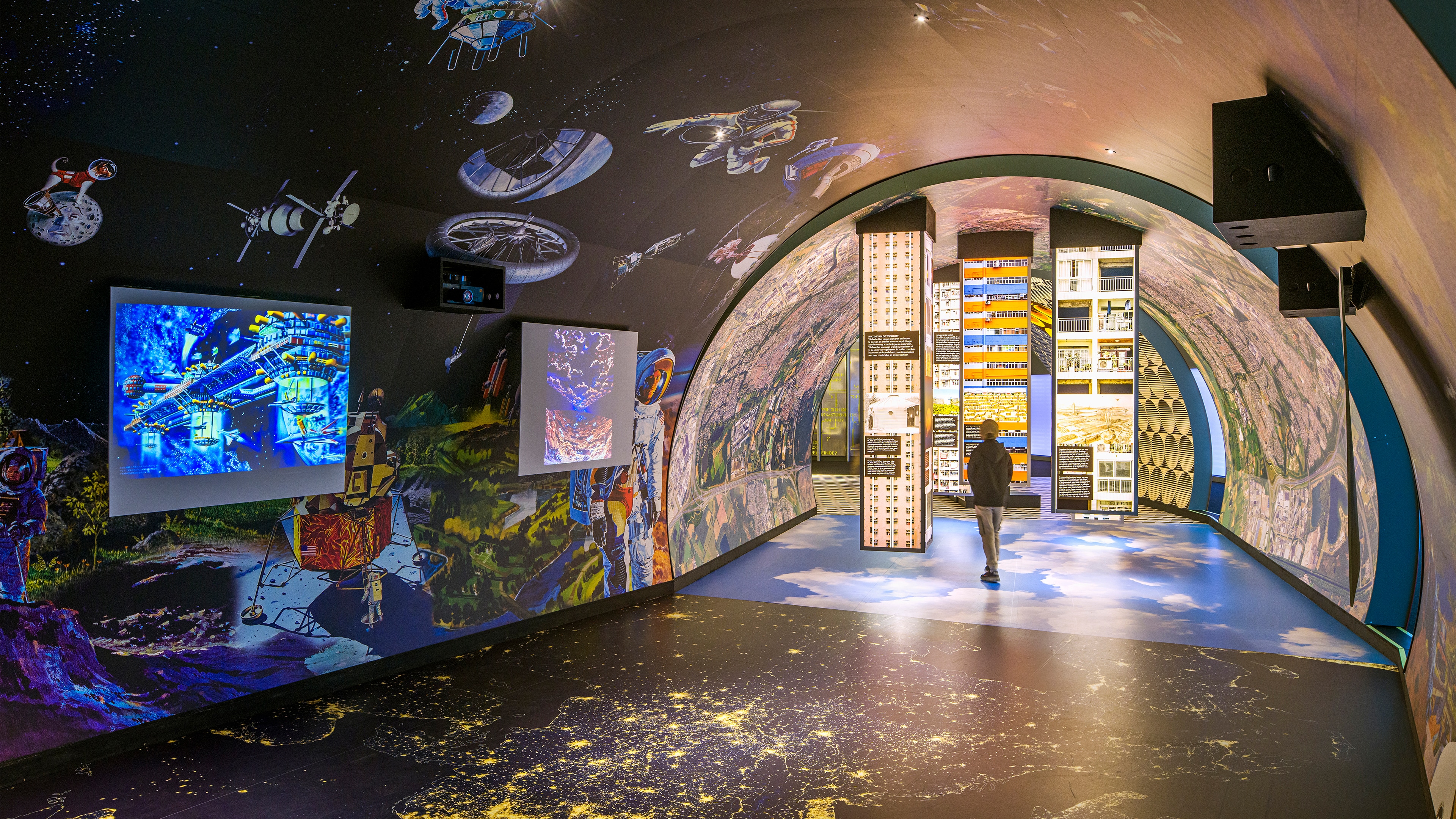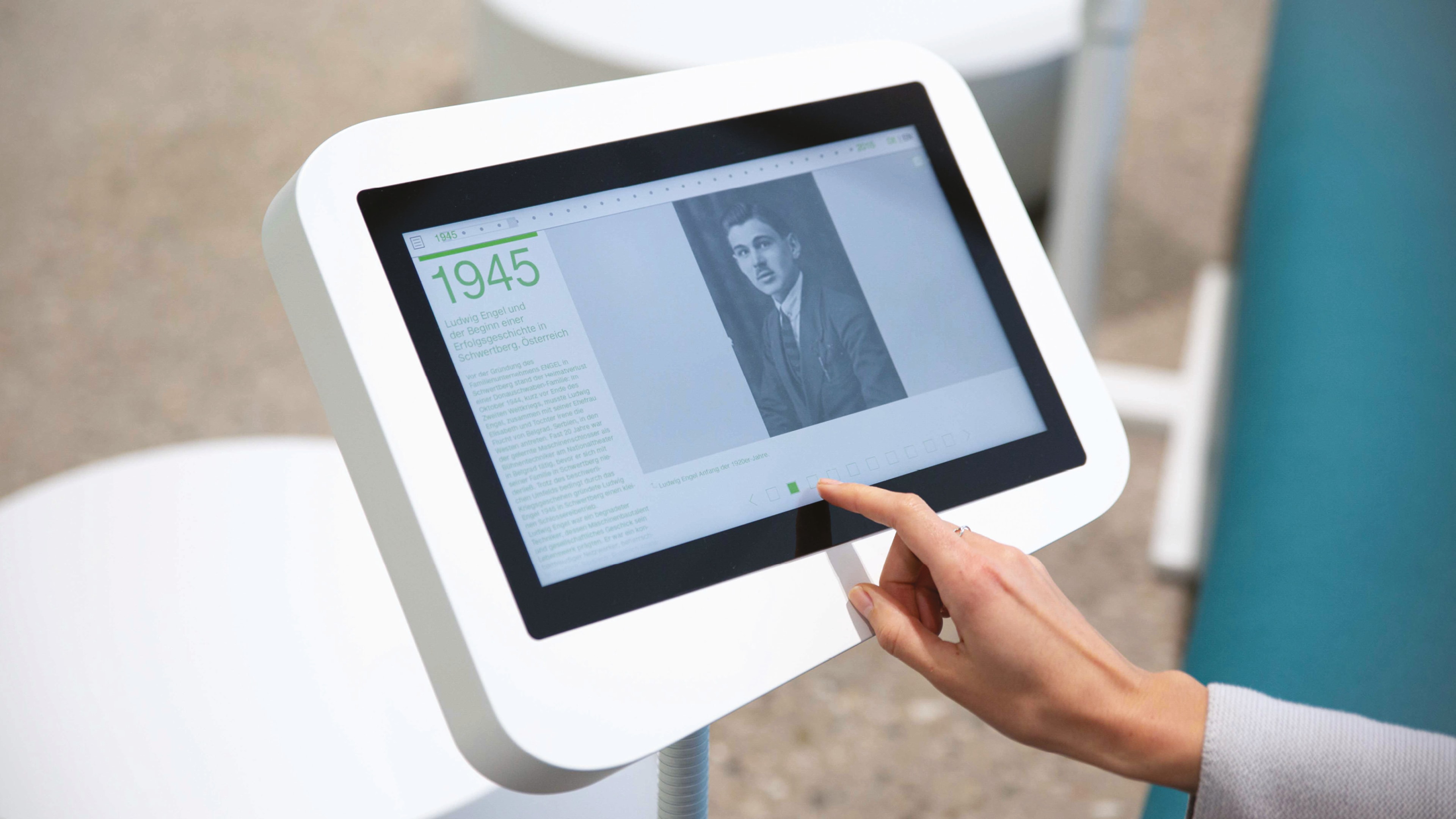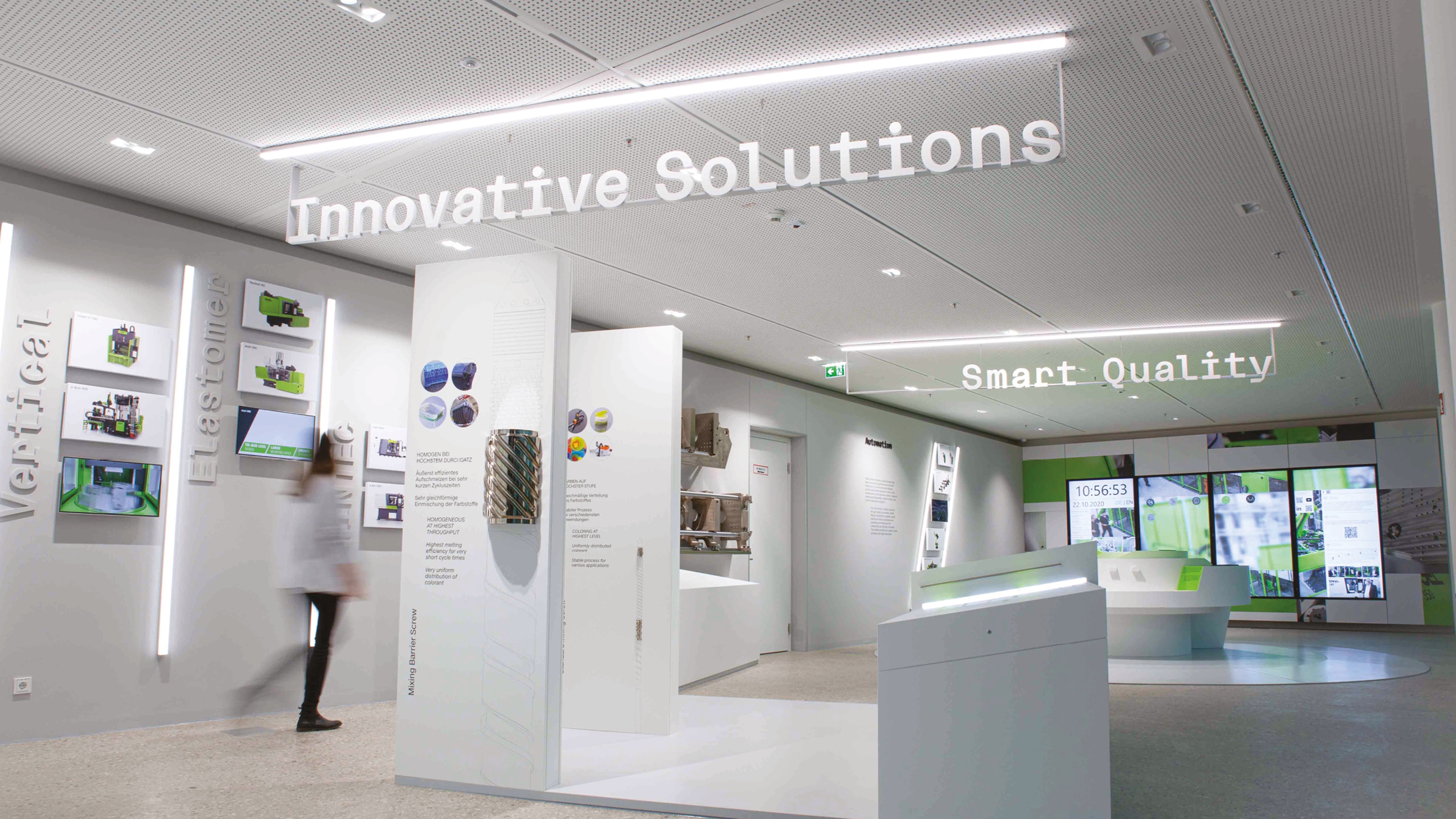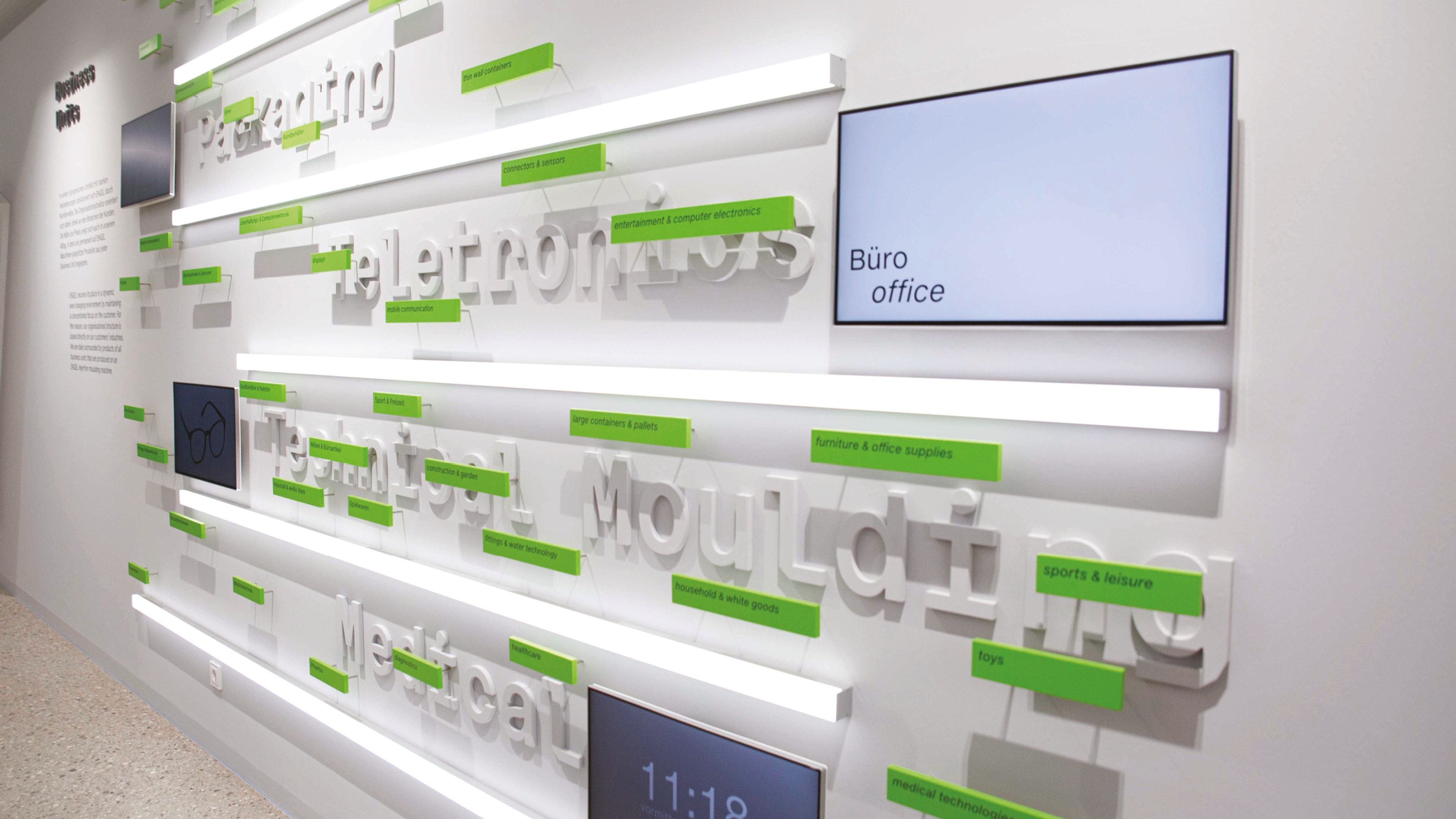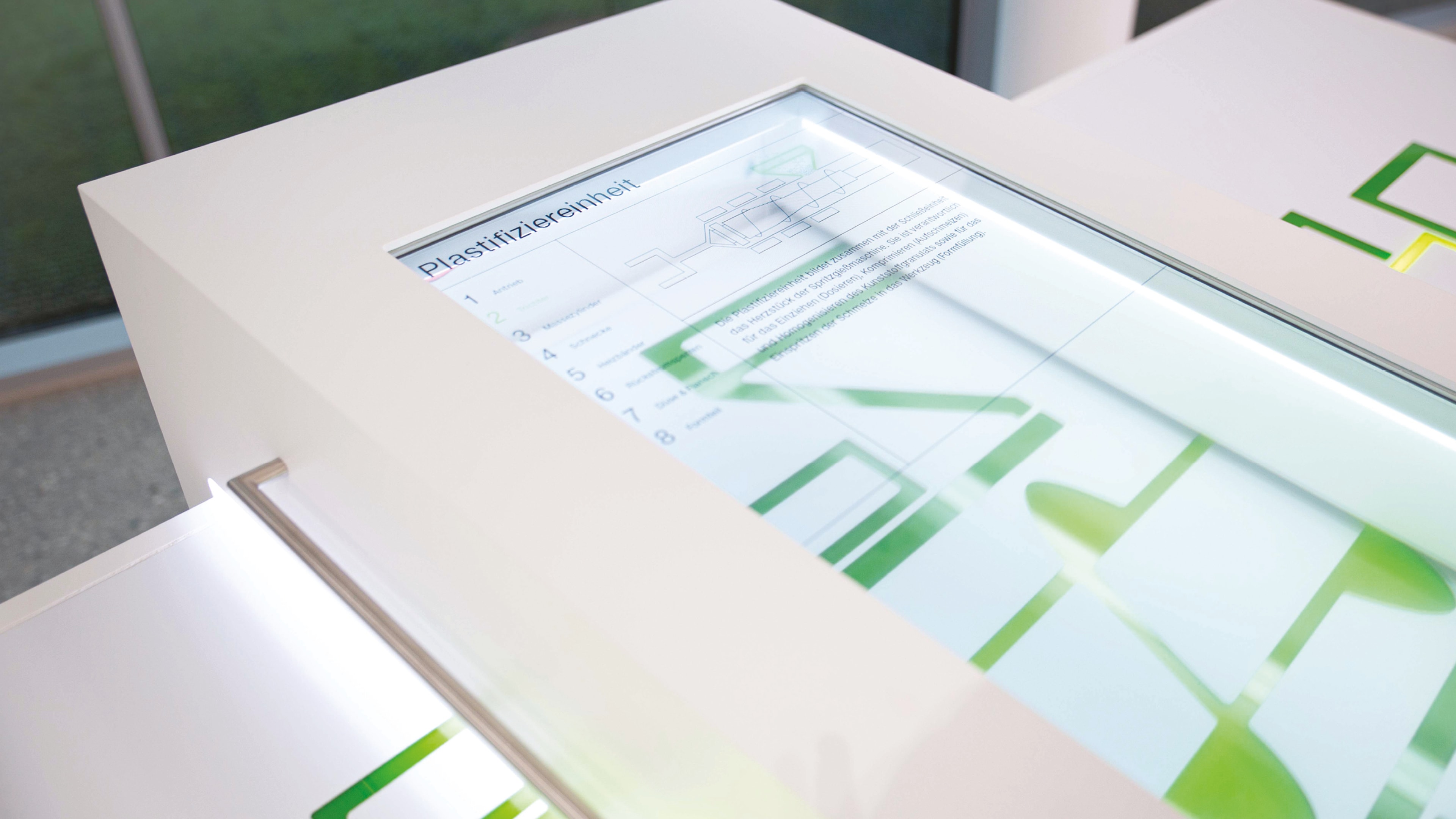 The exhibition ENGEL Dialogue (at the ENGEL Headquarters in Schwertberg, Austria) was architecturally designed as an open and transparent machine unit with an exciting sequence of different thematic islands explaining the companies philosophy and achievements. The company Responsive Spaces accompanied the realisation of all multimedia exhibits whose technological spectrum ranges from transparent and movable displays to head-mounted augmented reality.