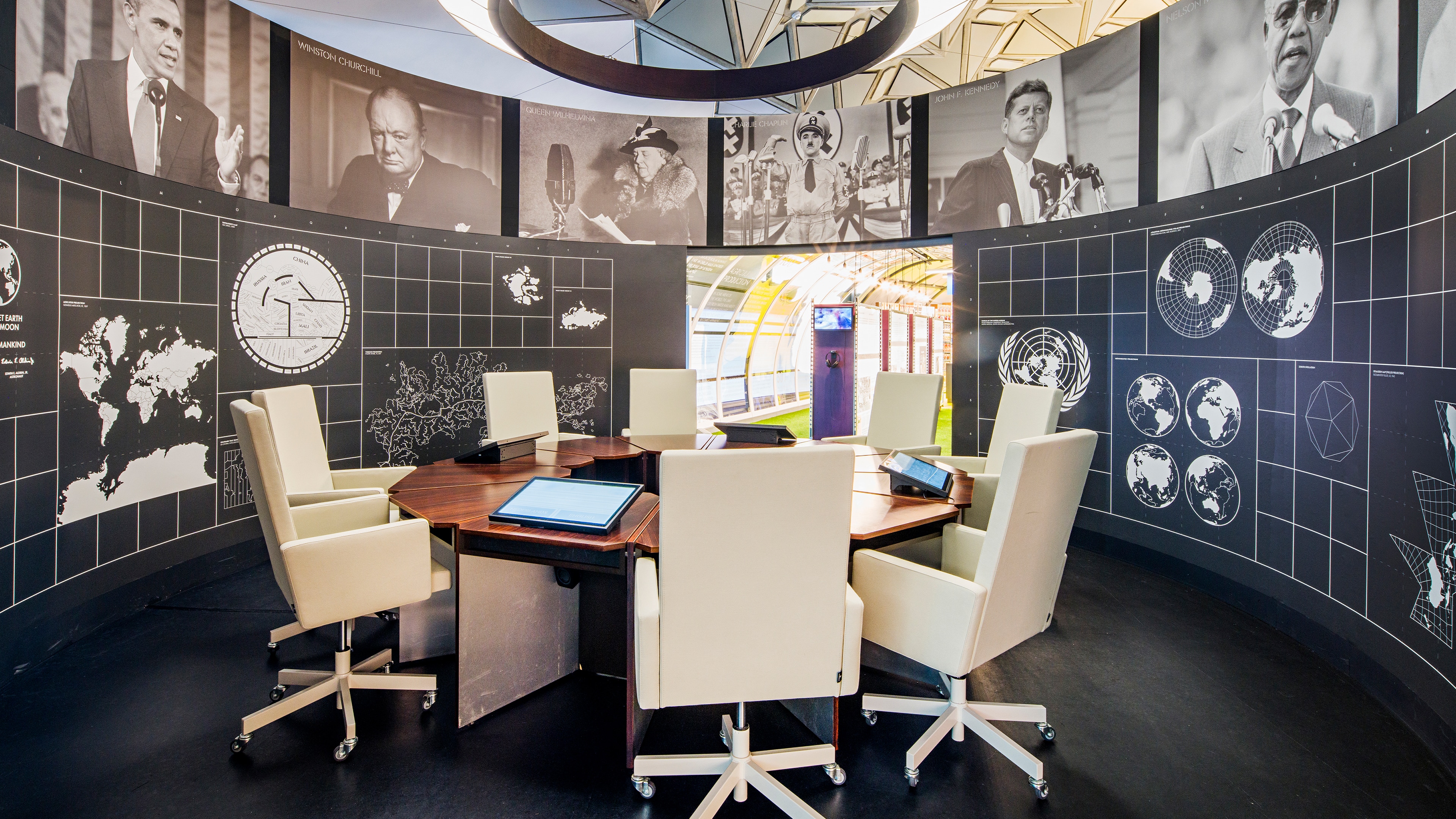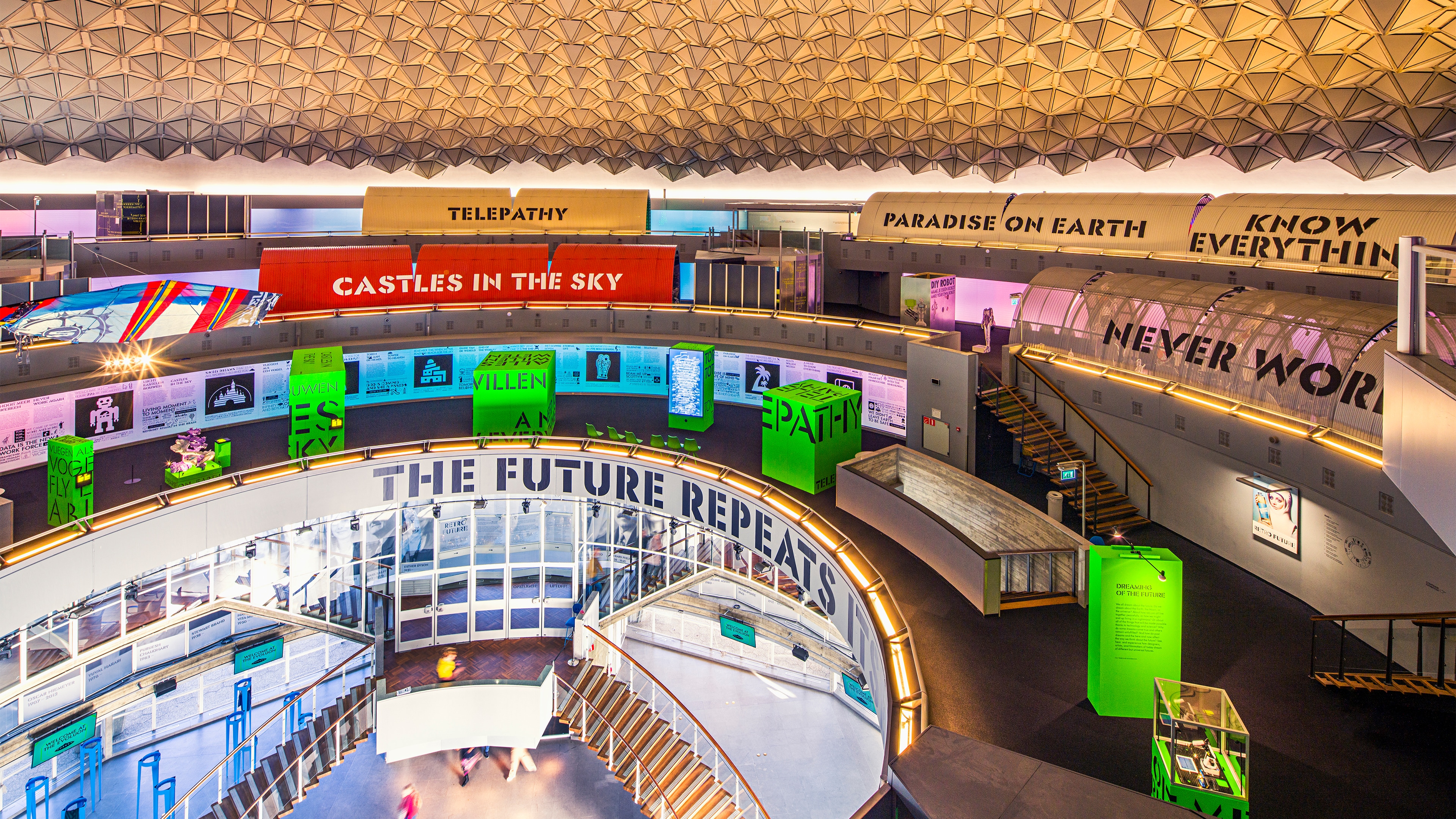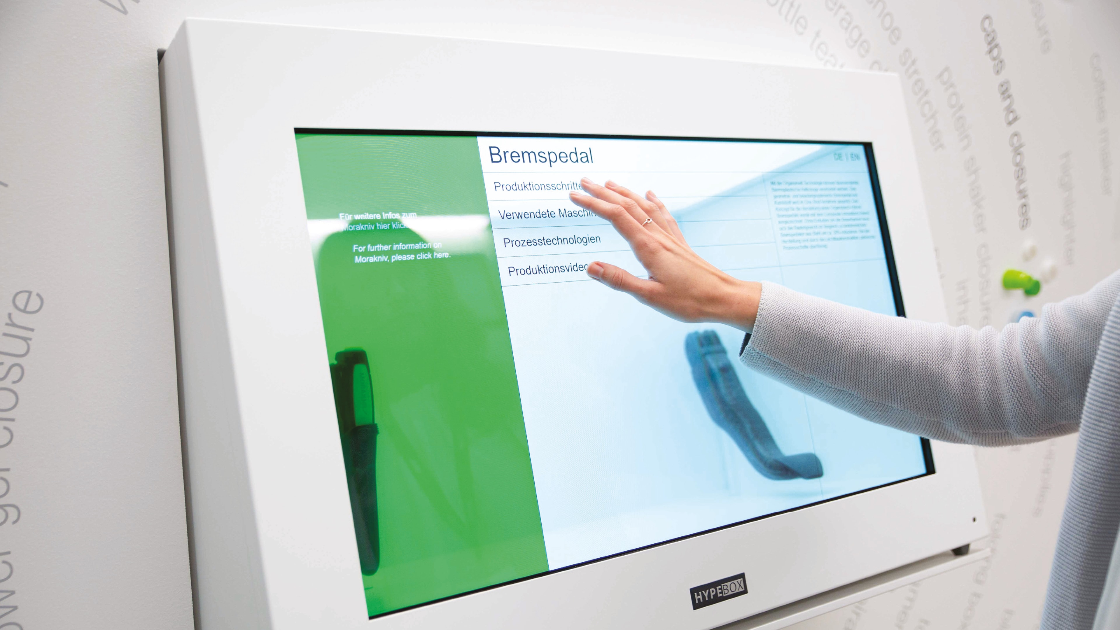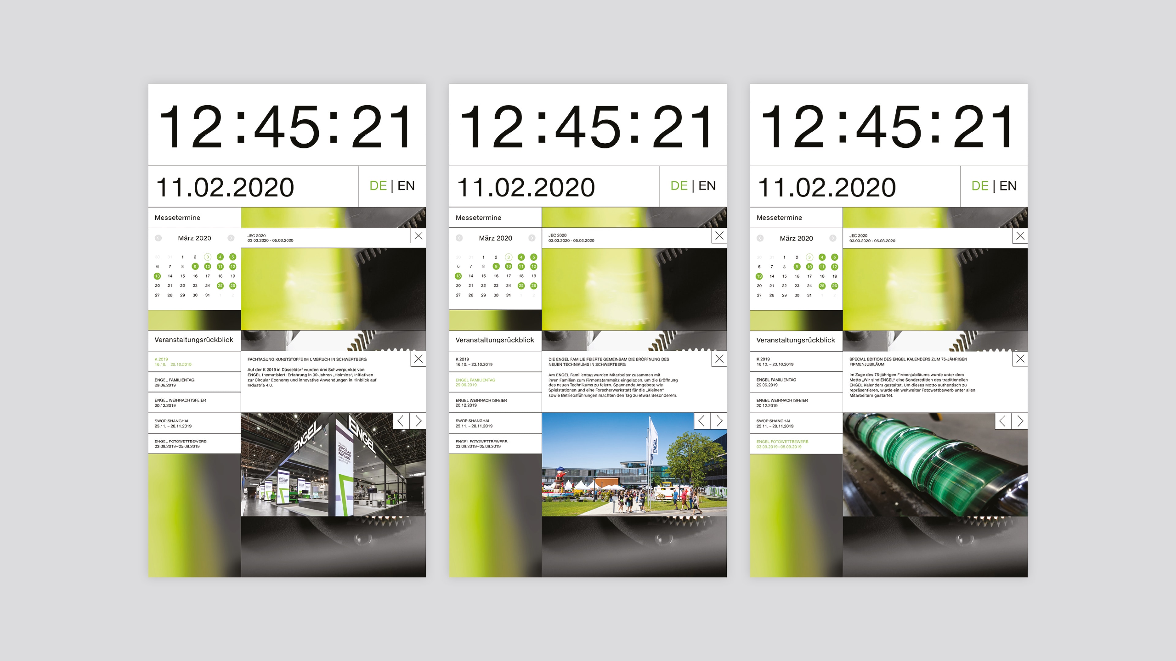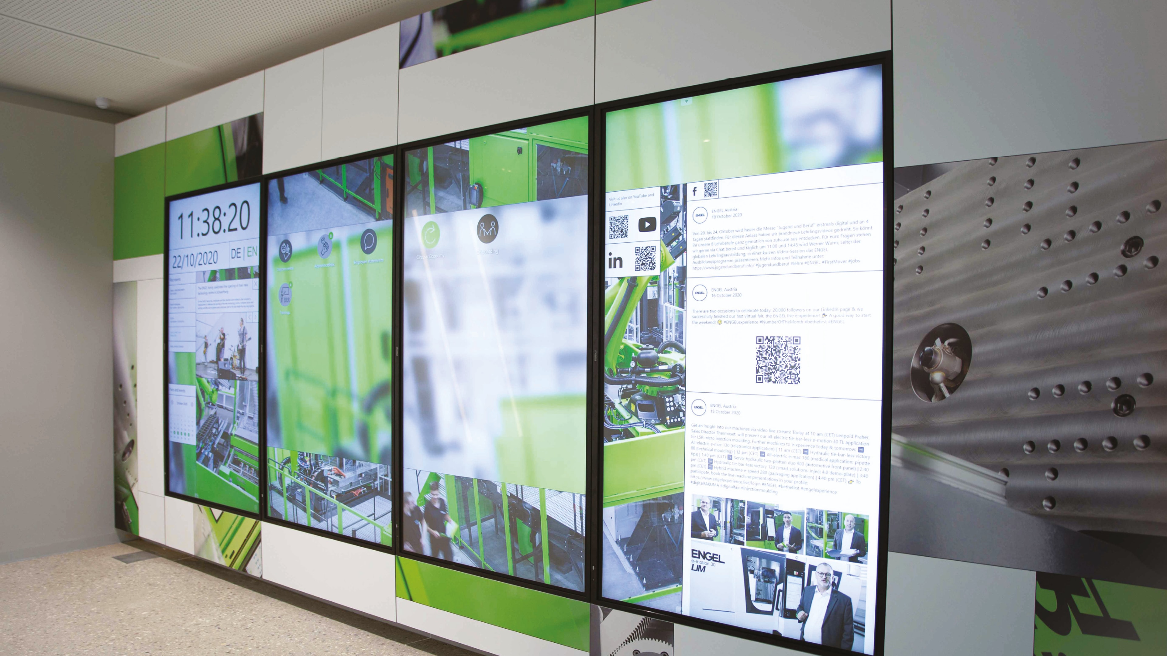 The exhibition ENGEL Dialogue (at the ENGEL Headquarters in Schwertberg, Austria) was architecturally designed as an open and transparent machine unit with an exciting sequence of different thematic islands explaining the companies philosophy and achievements. The company Responsive Spaces accompanied the realisation of all multimedia exhibits whose technological spectrum ranges from transparent and movable displays to head-mounted augmented reality.