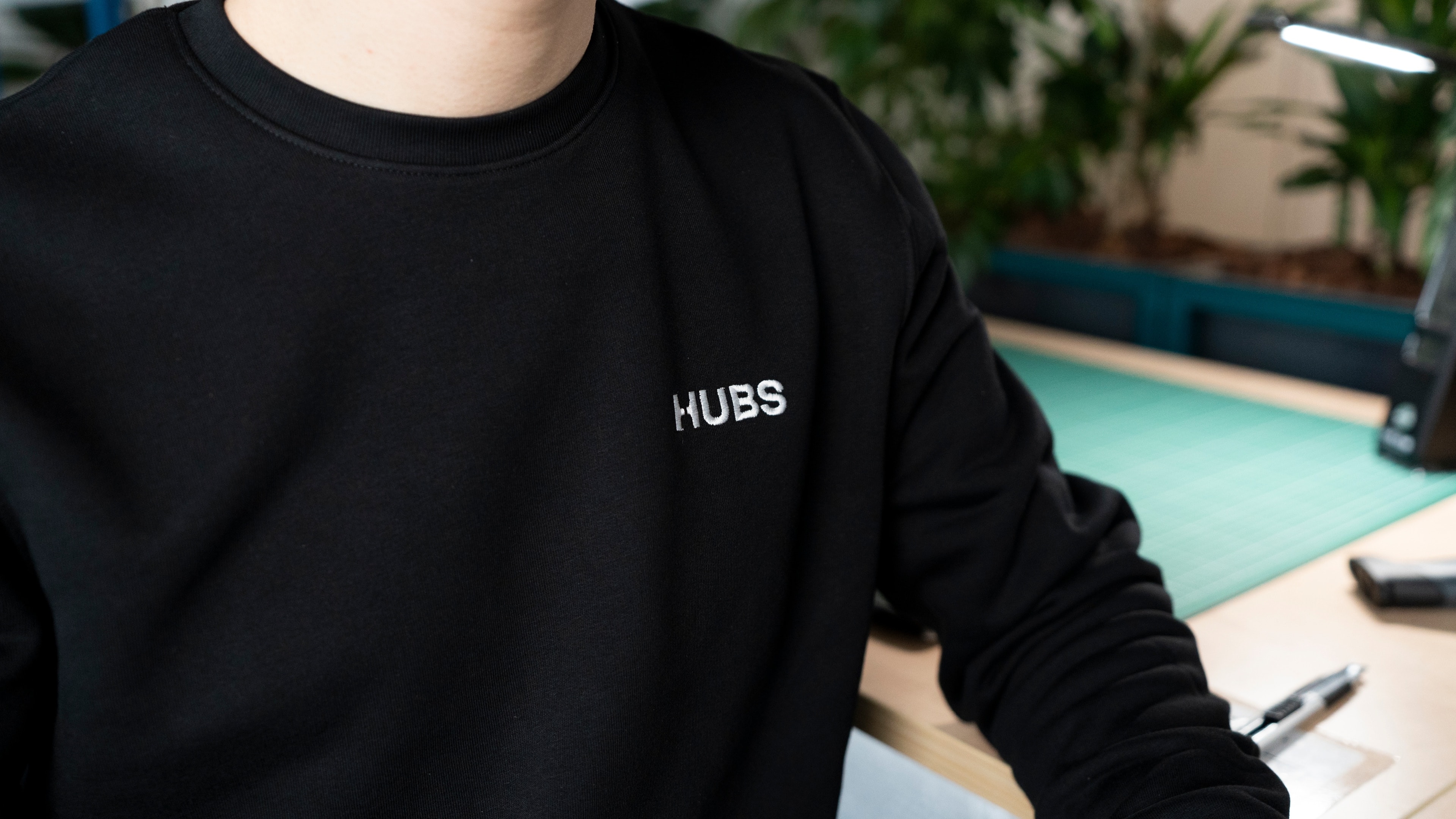 Logotype drawing for Hubs (previously known as 3D Hubs and currently known as Protolabs Network).