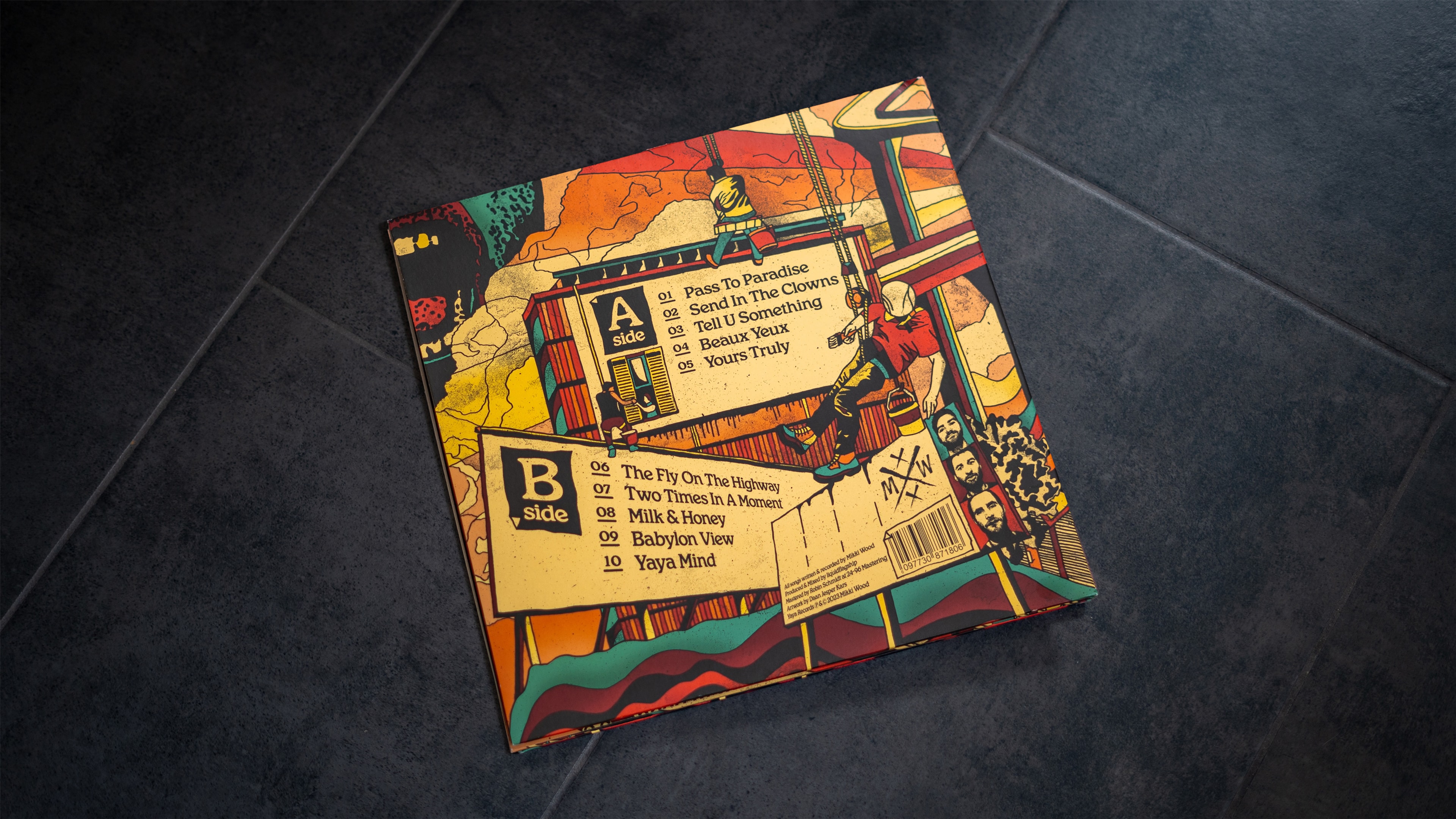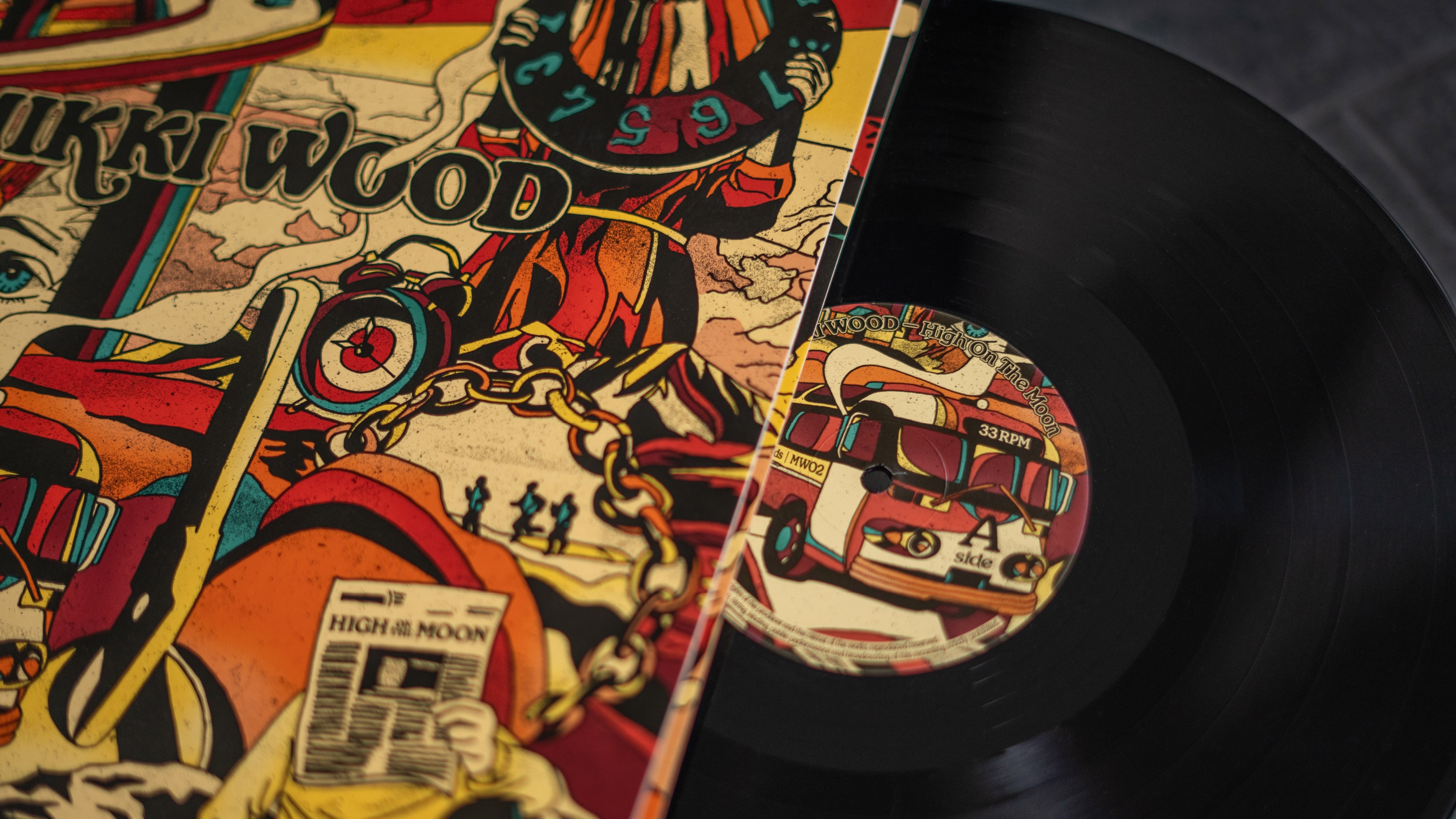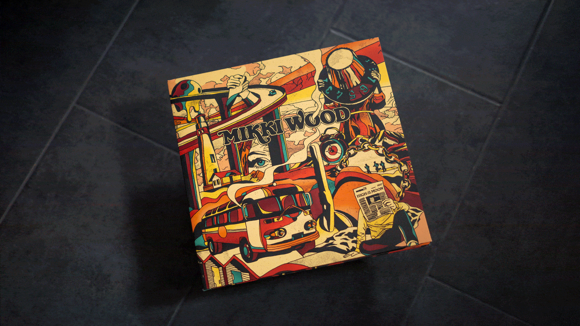 Artwork for Mikki Wood's 12" debut album High On The Moon, which perfectly captured the raw energy of their live shows. All the illustrations represent little parts of all the 10 tracks on the album. From cover to cover the illustration loops seemlessly. On stage, the band creates an atmosphere of total surrender, whether they’re playing in a small café or a larger venue. They always manage to bring the crowd into their performance. Since its formation, Mikki Wood has firmly embedded itself in the underground music scene, and the band continues to push new boundaries.