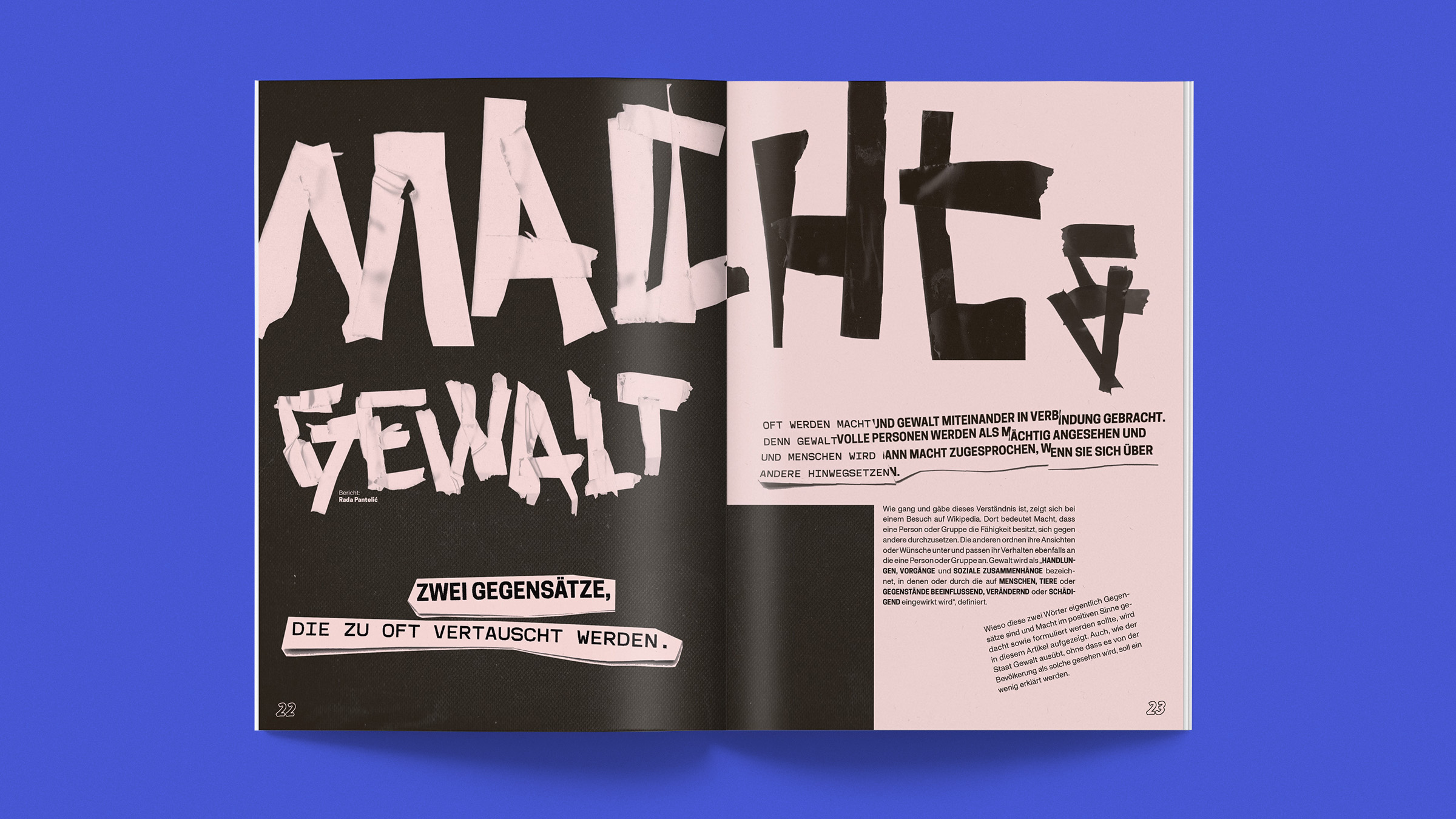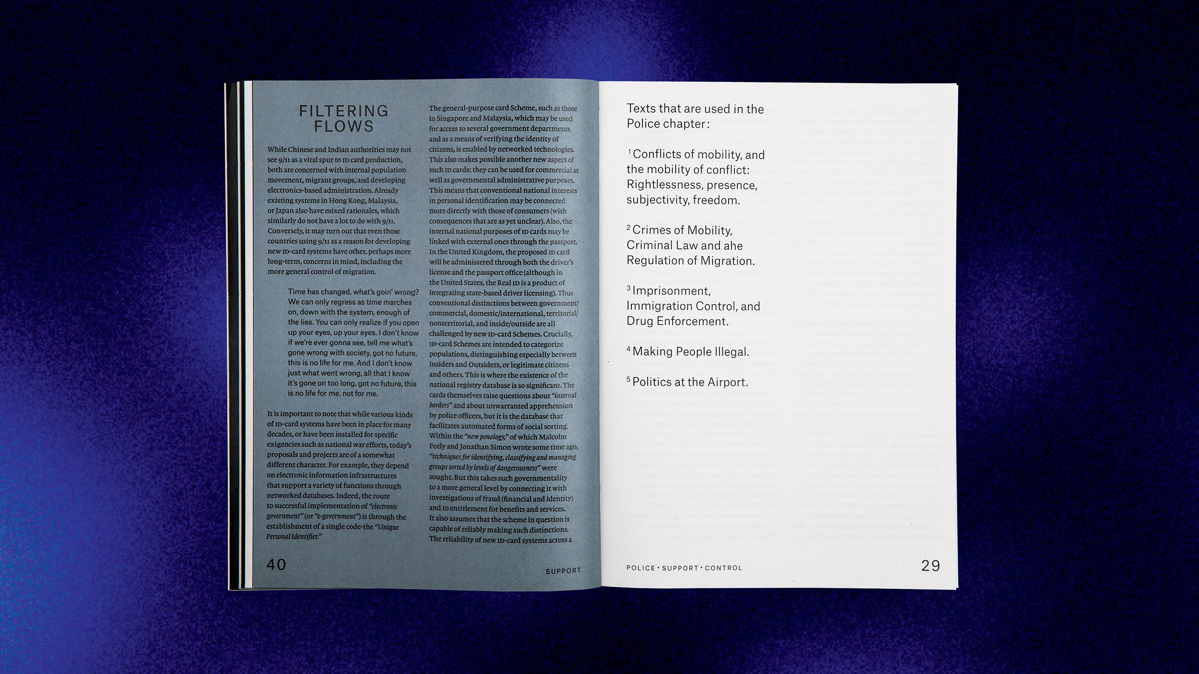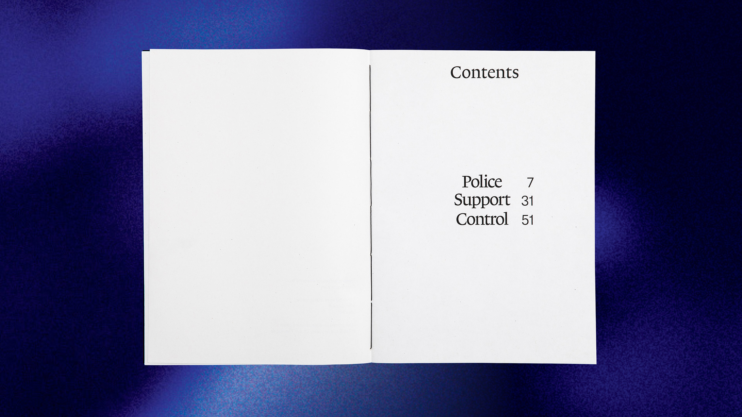 A typographic reader which contains three shuffled, open-source texts. The reader has three different approaches to read the publication. The first text is about the police, the second text about governmental support and the third text is about control within a government. The publication is made to shine light upon police officers who see themselves as governing power instead of being equal to others.