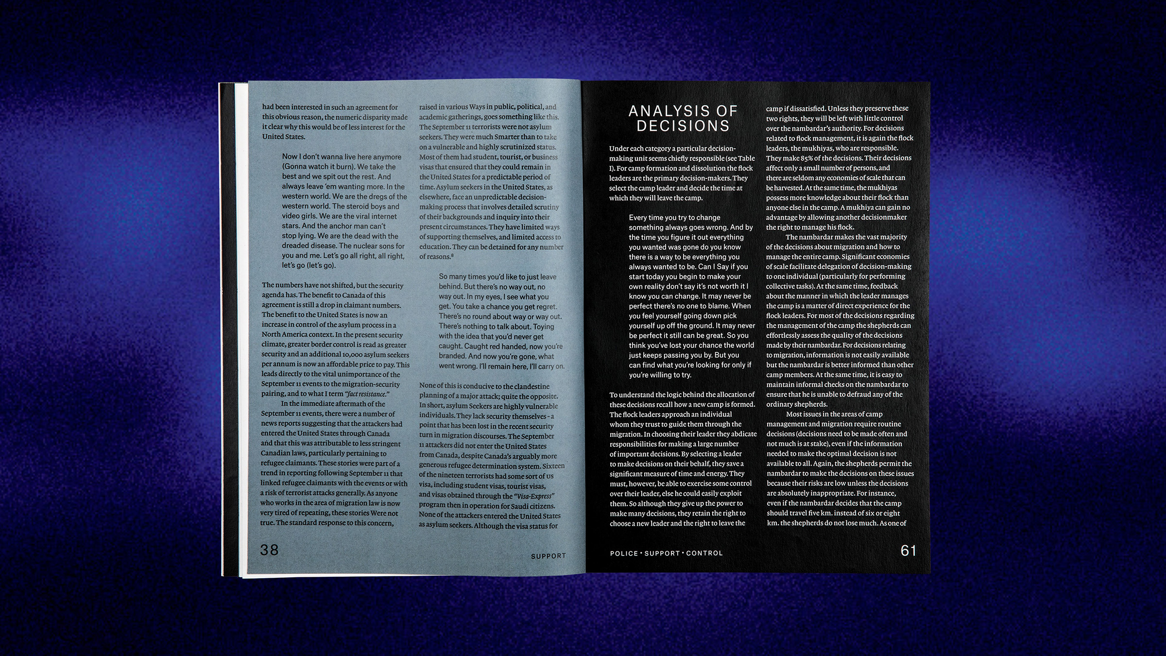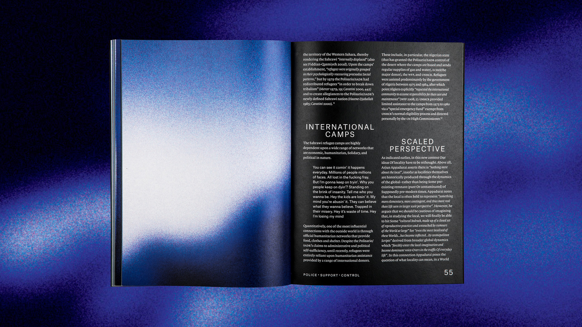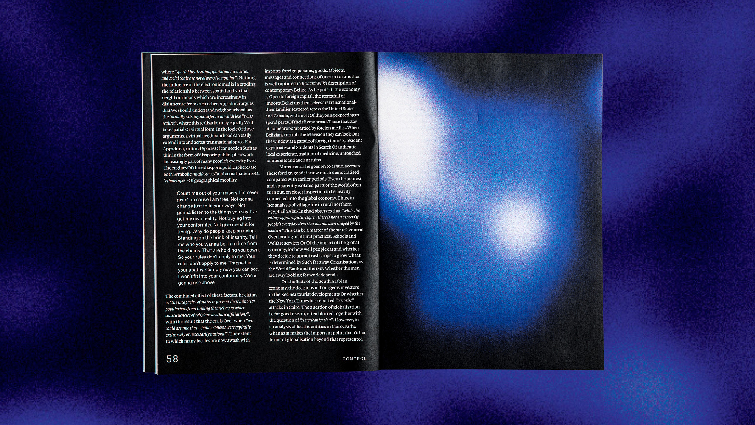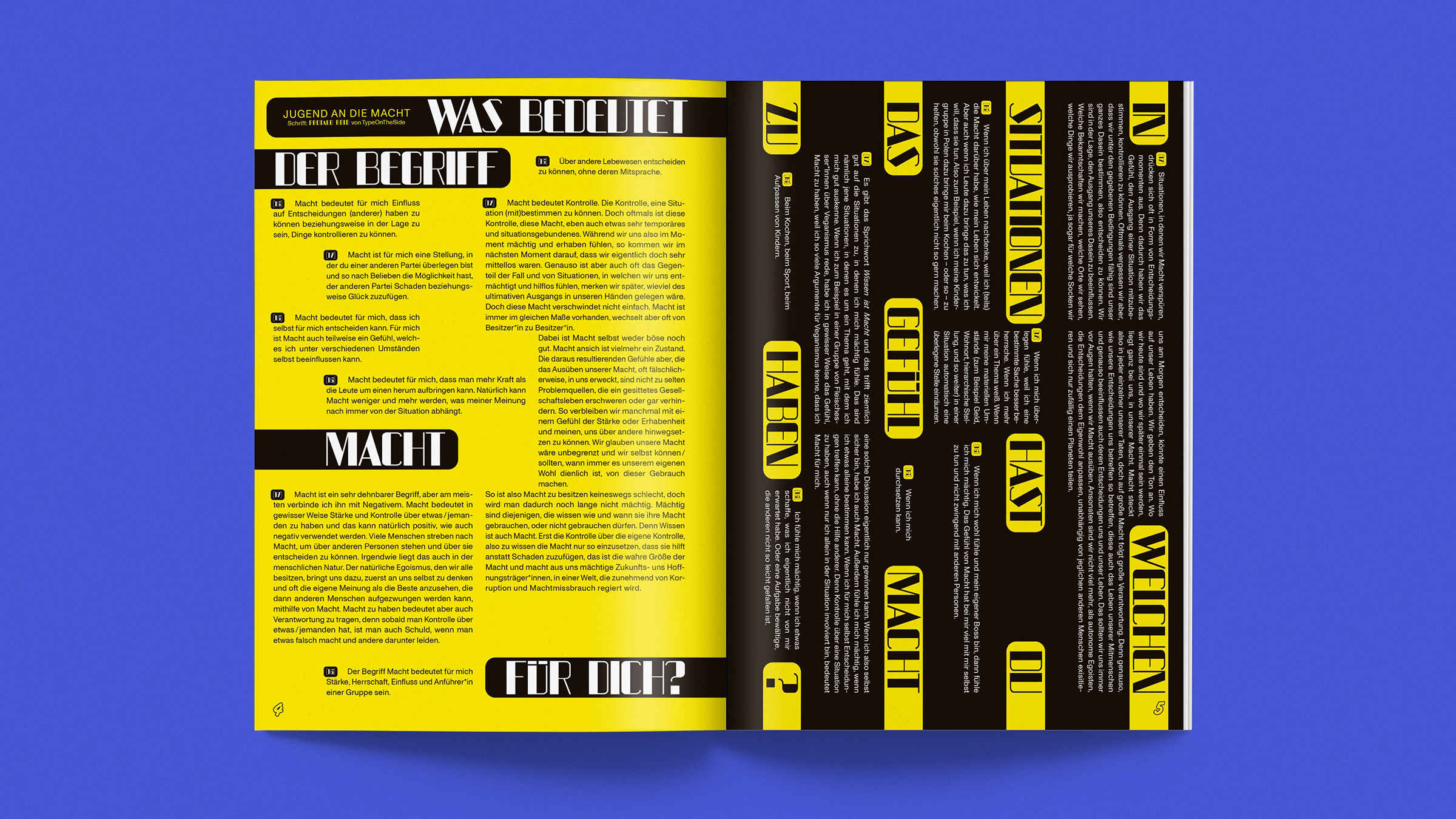 A typographic reader which contains three shuffled, open-source texts. The reader has three different approaches to read the publication. The first text is about the police, the second text about governmental support and the third text is about control within a government. The publication is made to shine light upon police officers who see themselves as governing power instead of being equal to others.