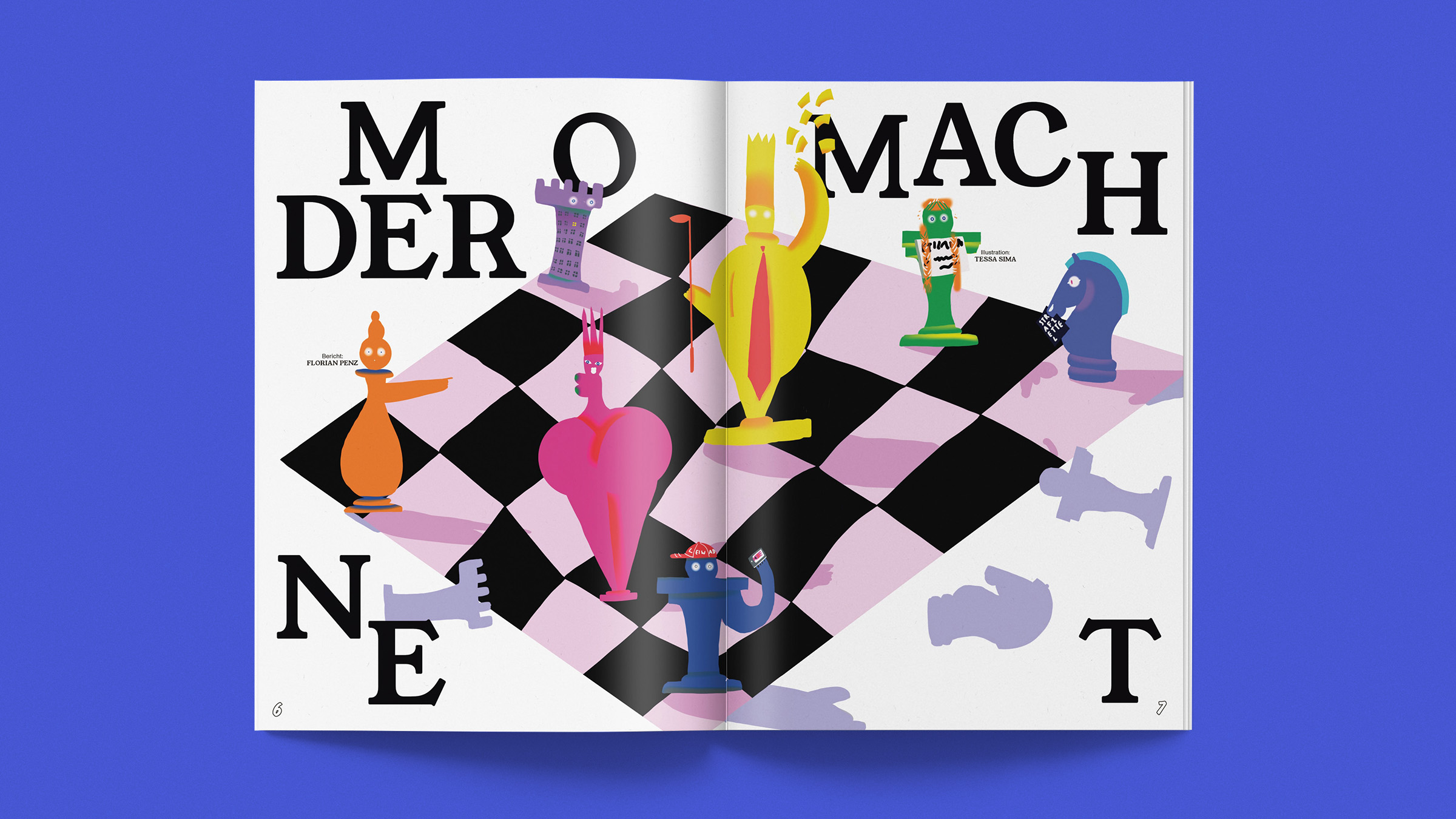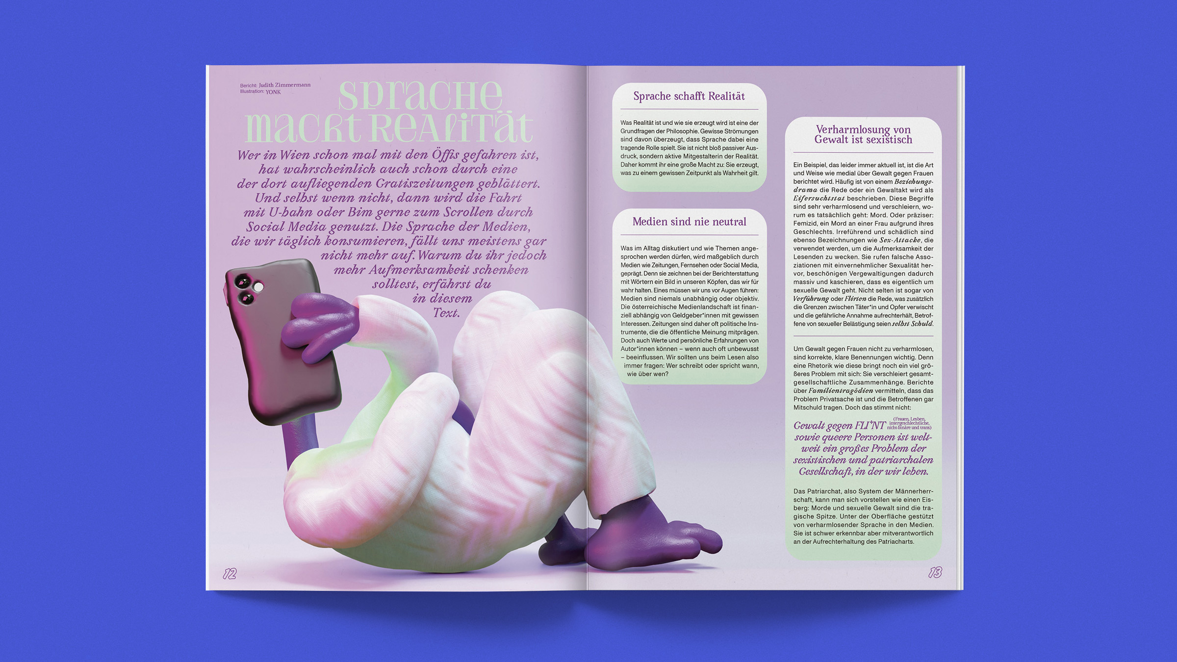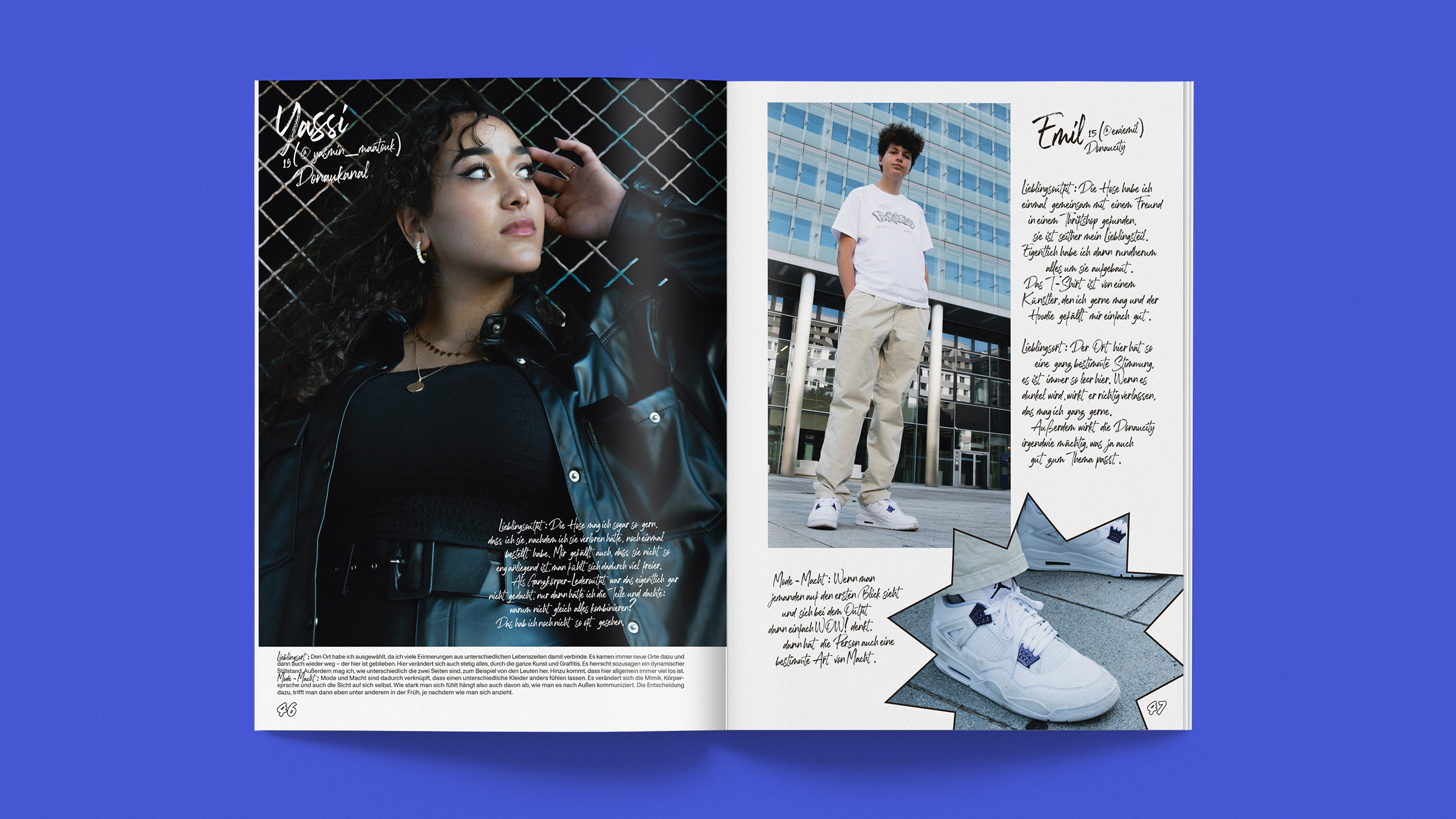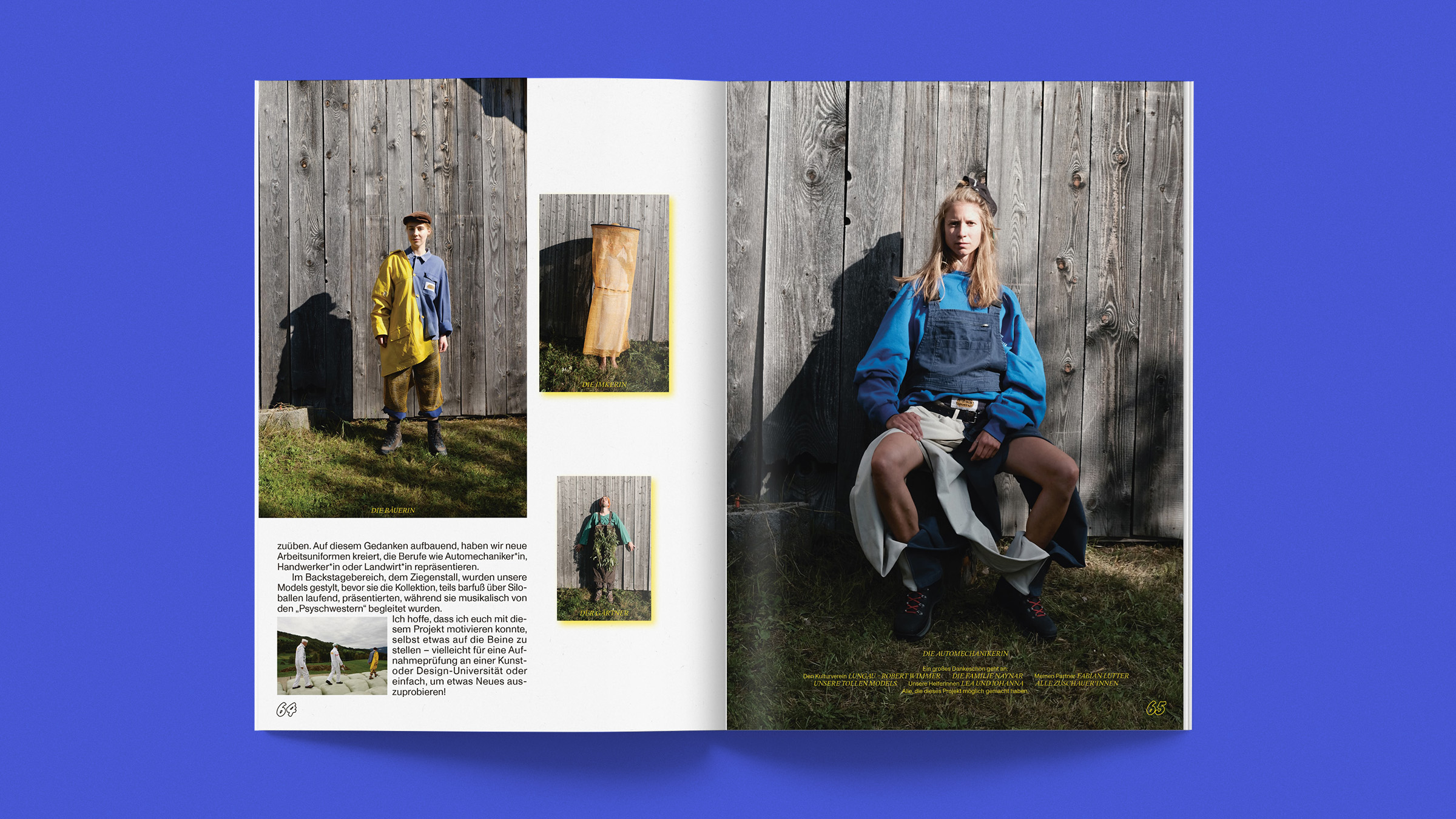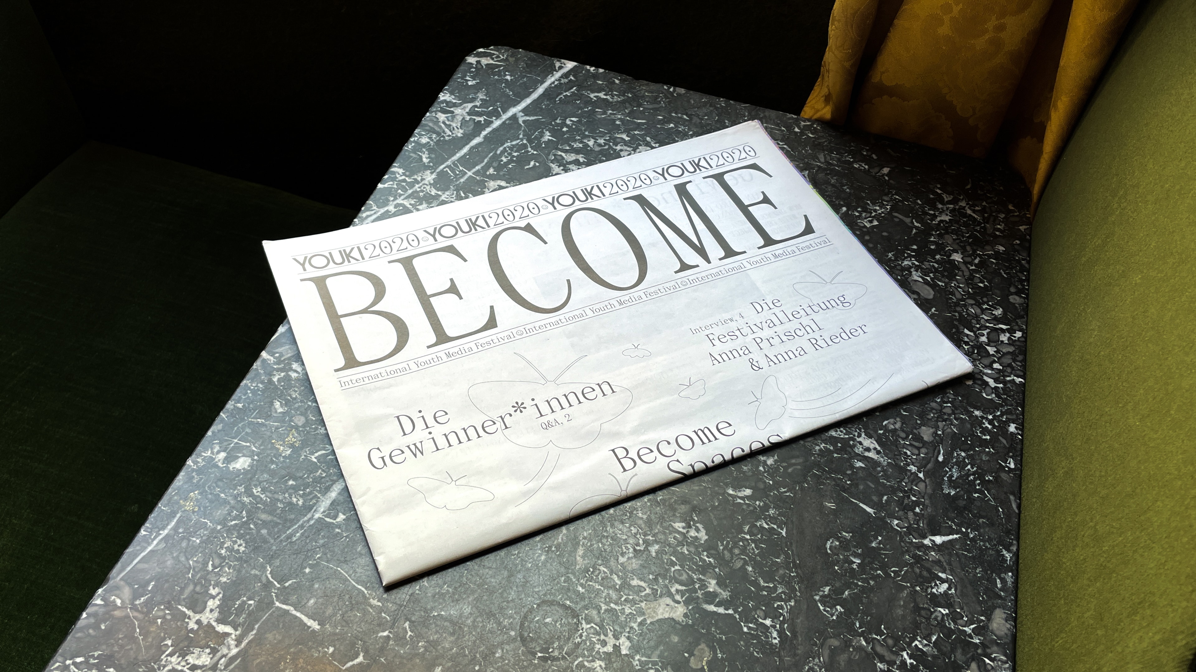 How can digital worlds be made physically palpable? The YOUKI Festival 2020 had to take place solely online due to the pandemic. It was essential to translate this digital space in the annual print edition and make it physically palpable. An immersive large scale zone was created – an analogue correspondent to the online festival, in which there are possibilities to get lost during reading and thus find new paths and spaces.