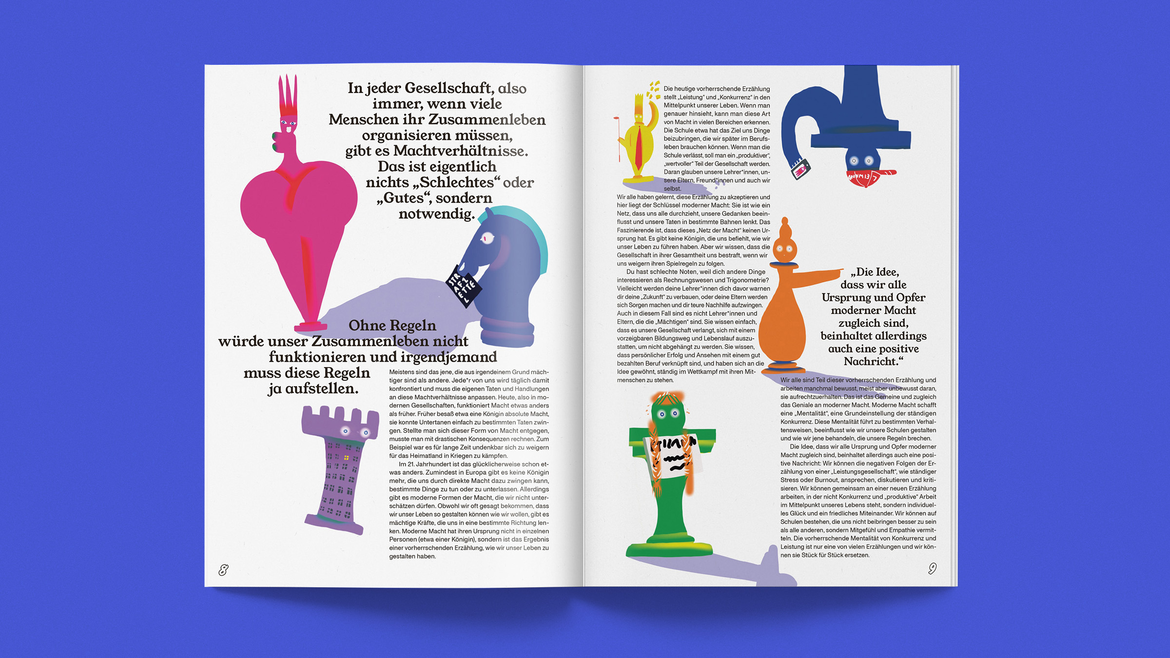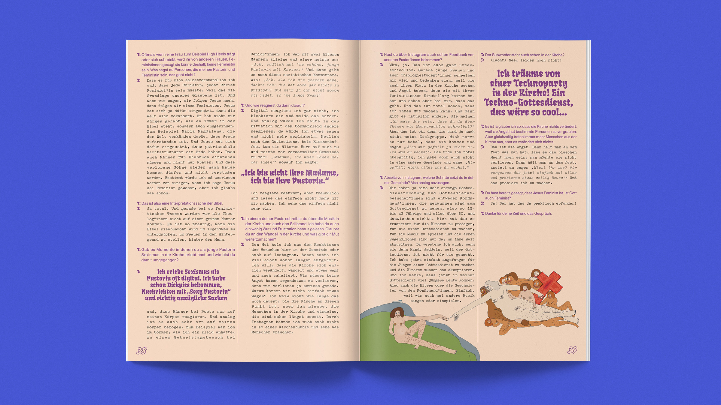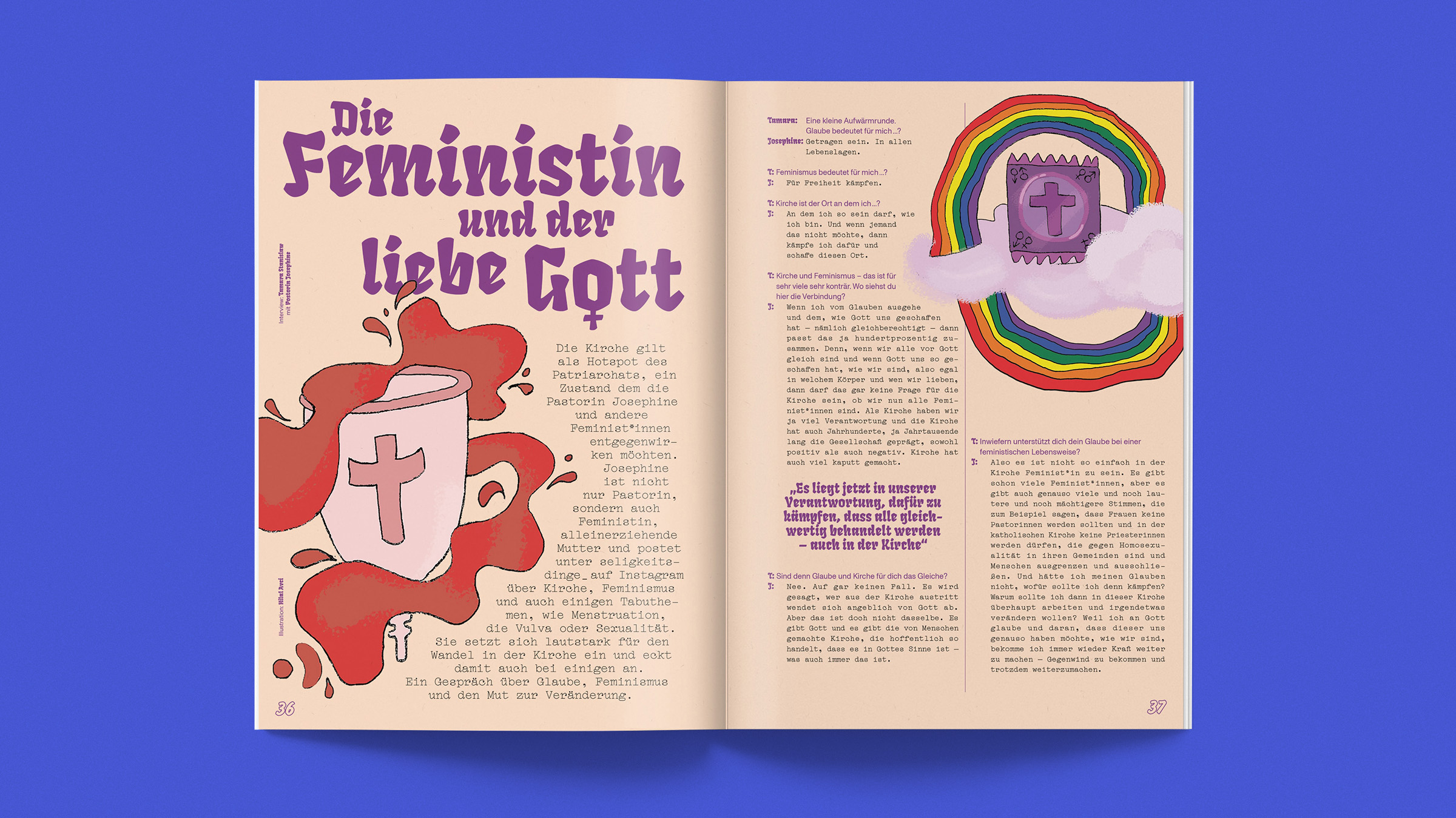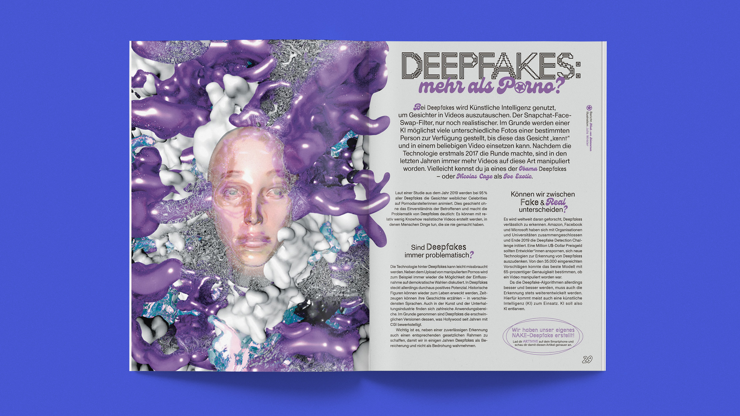 How can digital worlds be made physically palpable? The YOUKI Festival 2020 had to take place solely online due to the pandemic. It was essential to translate this digital space in the annual print edition and make it physically palpable. An immersive large scale zone was created – an analogue correspondent to the online festival, in which there are possibilities to get lost during reading and thus find new paths and spaces.