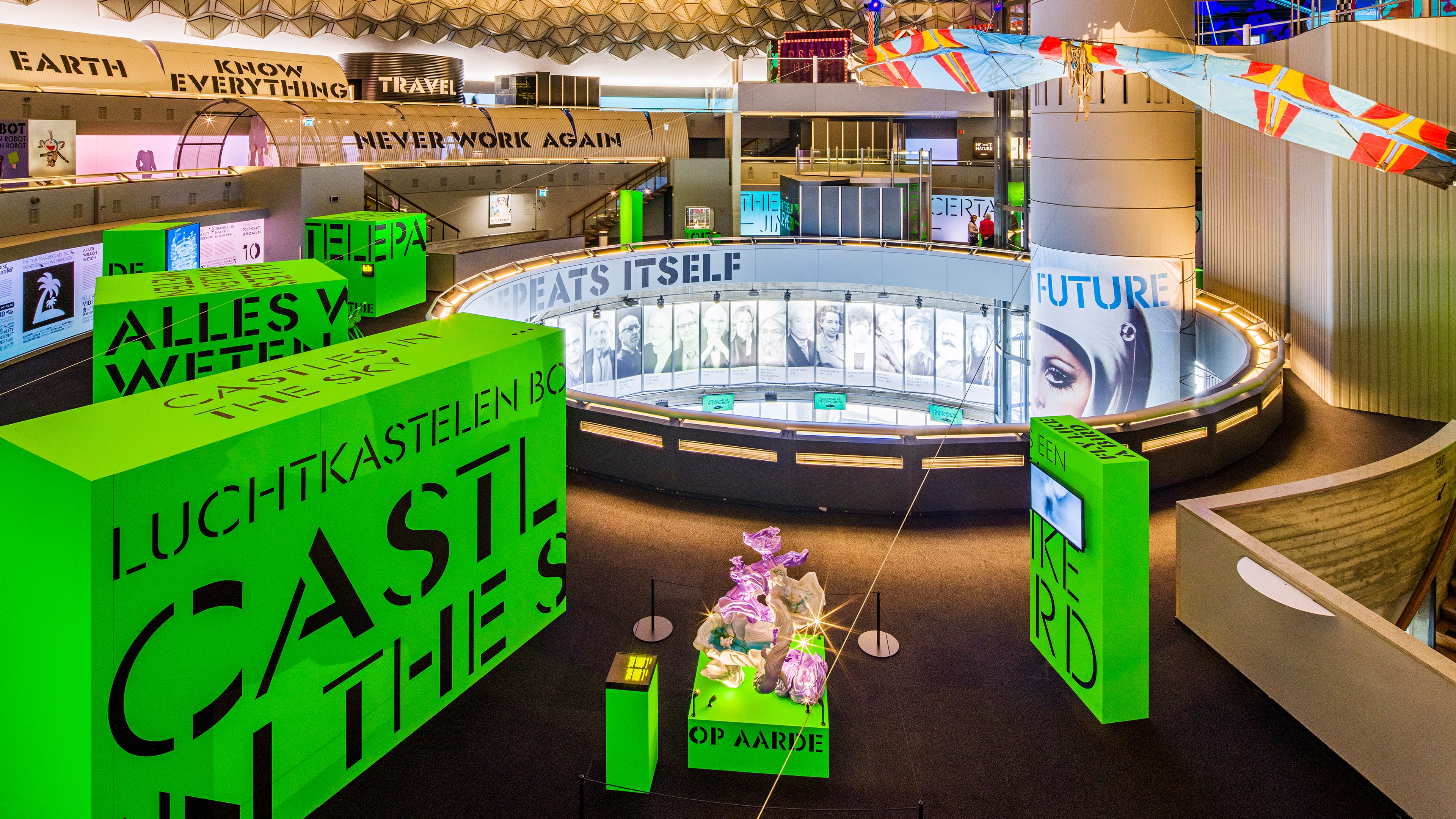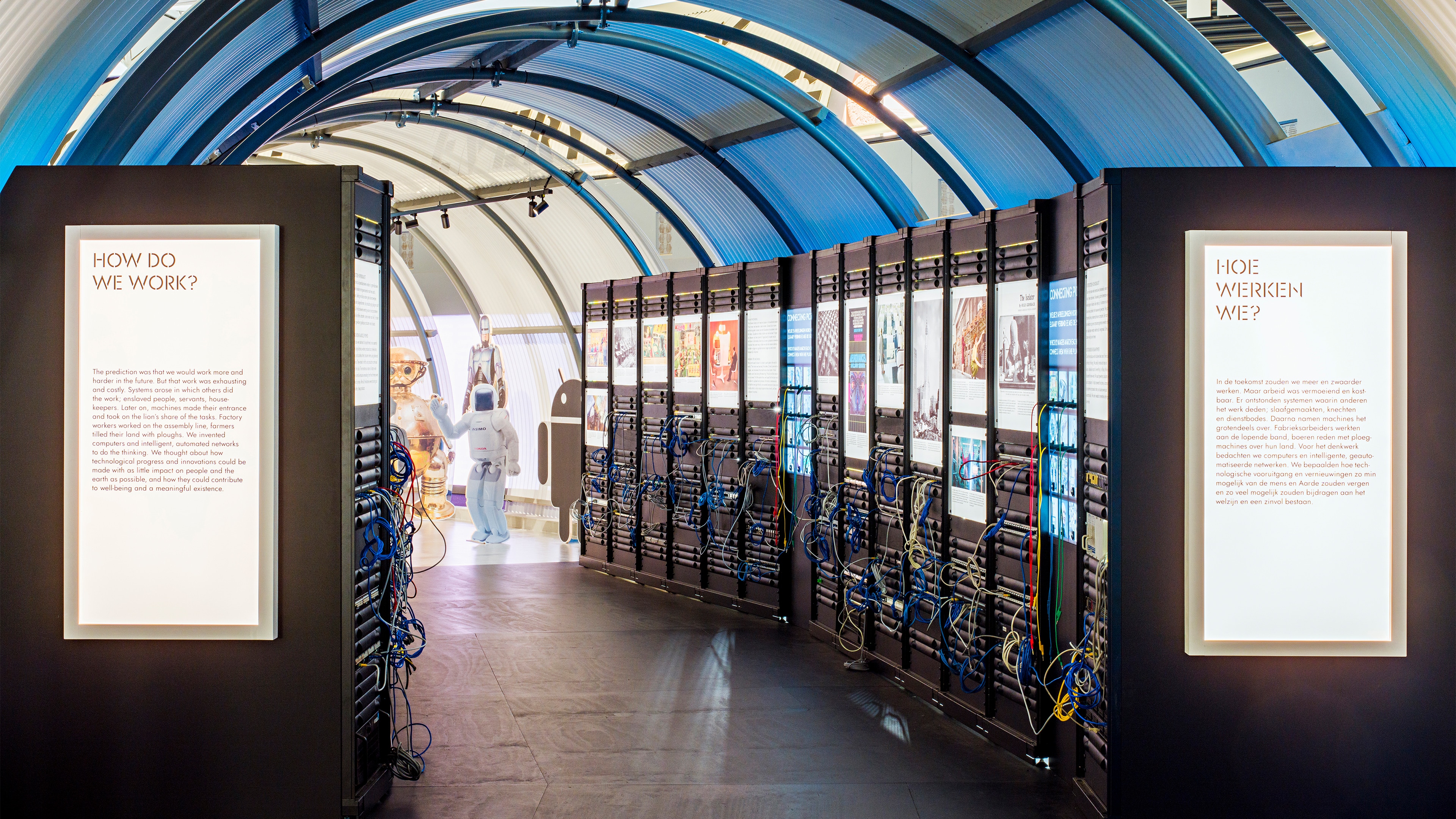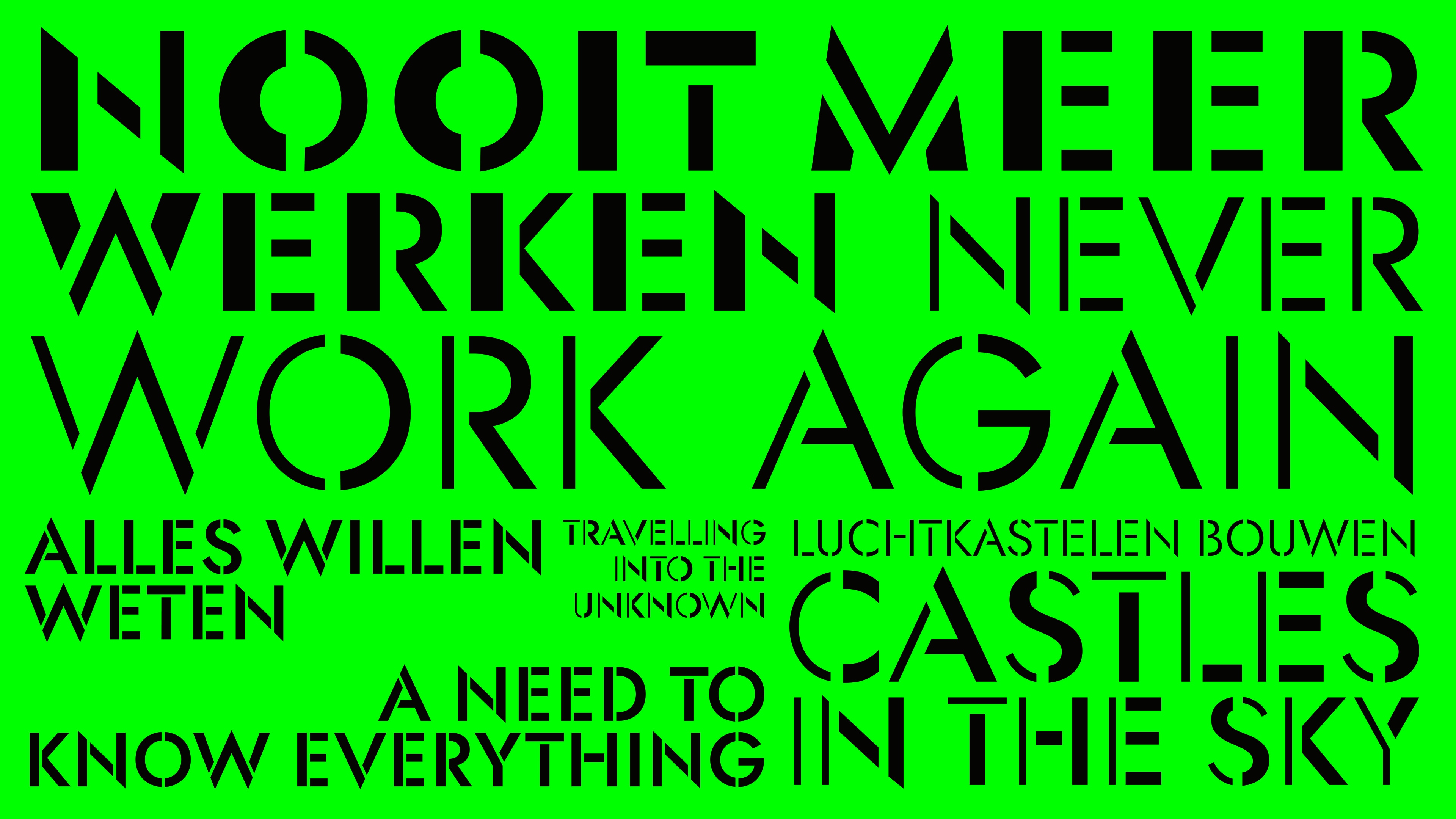 Exhibition design by Niels Schrader (Mind Design), Marco Broeders, Wouter van Dillen and Mieke Gerritzen (Next Nature). Retro Future is an exhibition about the future of the past. Three rings containing an artists exhibition and ten tunnels, asking ten questions about the future. Each tunnel is designed to give an insight to questions such as: 'How do we work?', 'How do we live?', 'How do we travel?', 'How do we communicate?'. For this exhibition I was part of the graphic design and type design team.