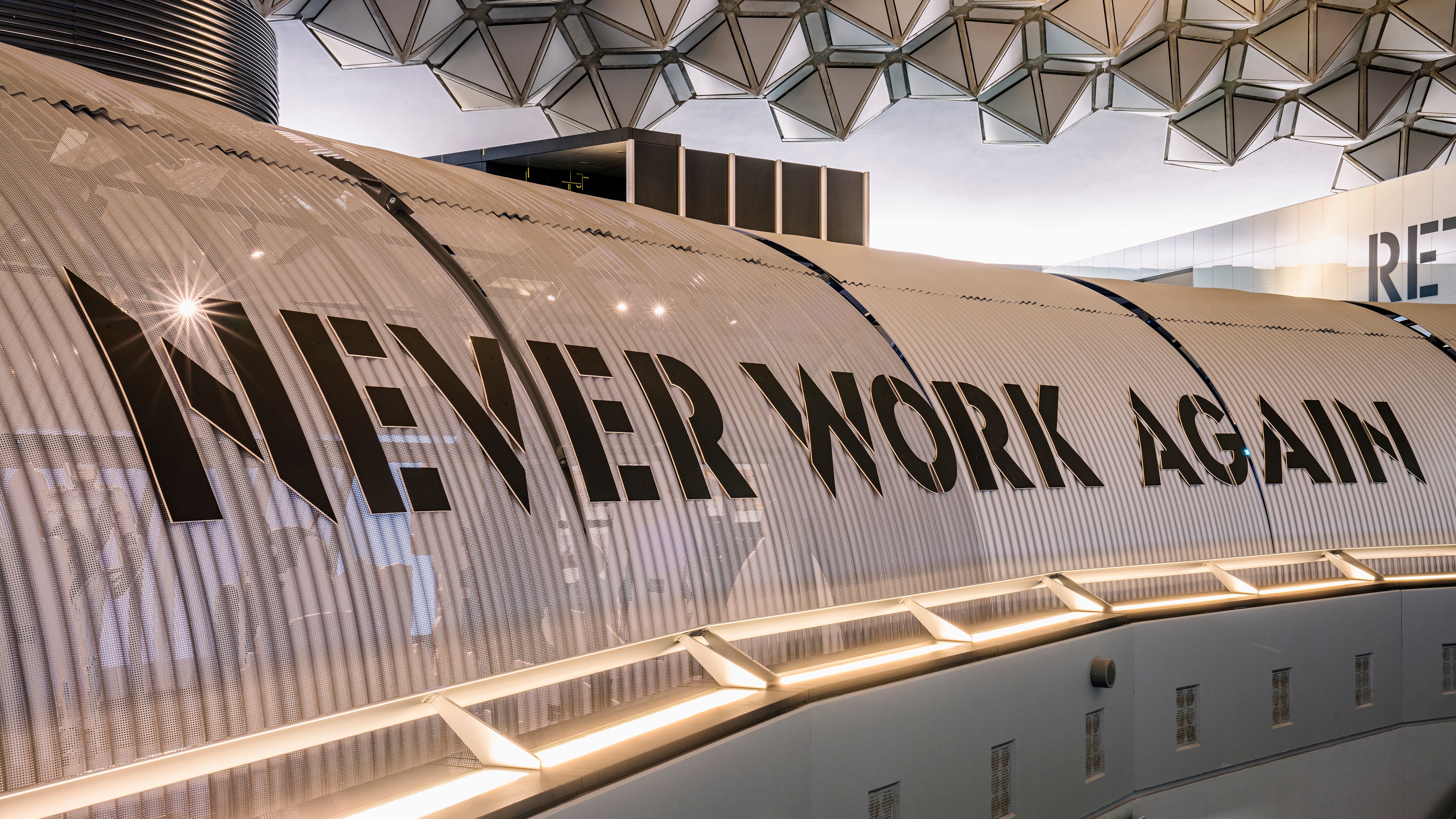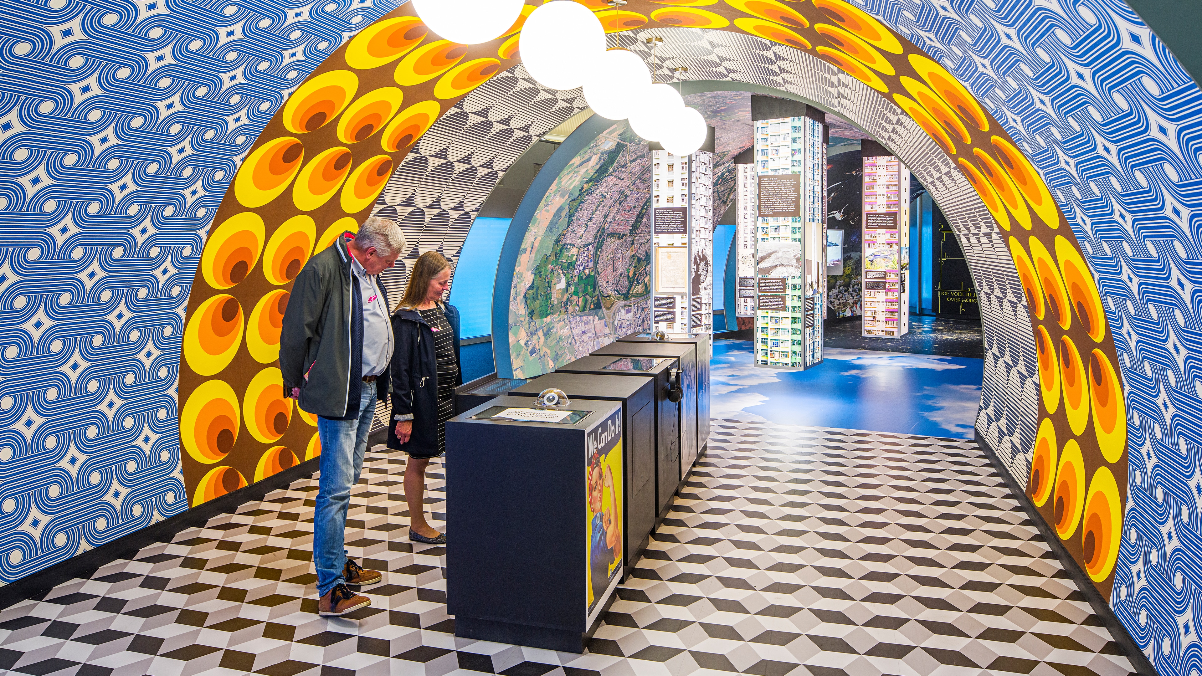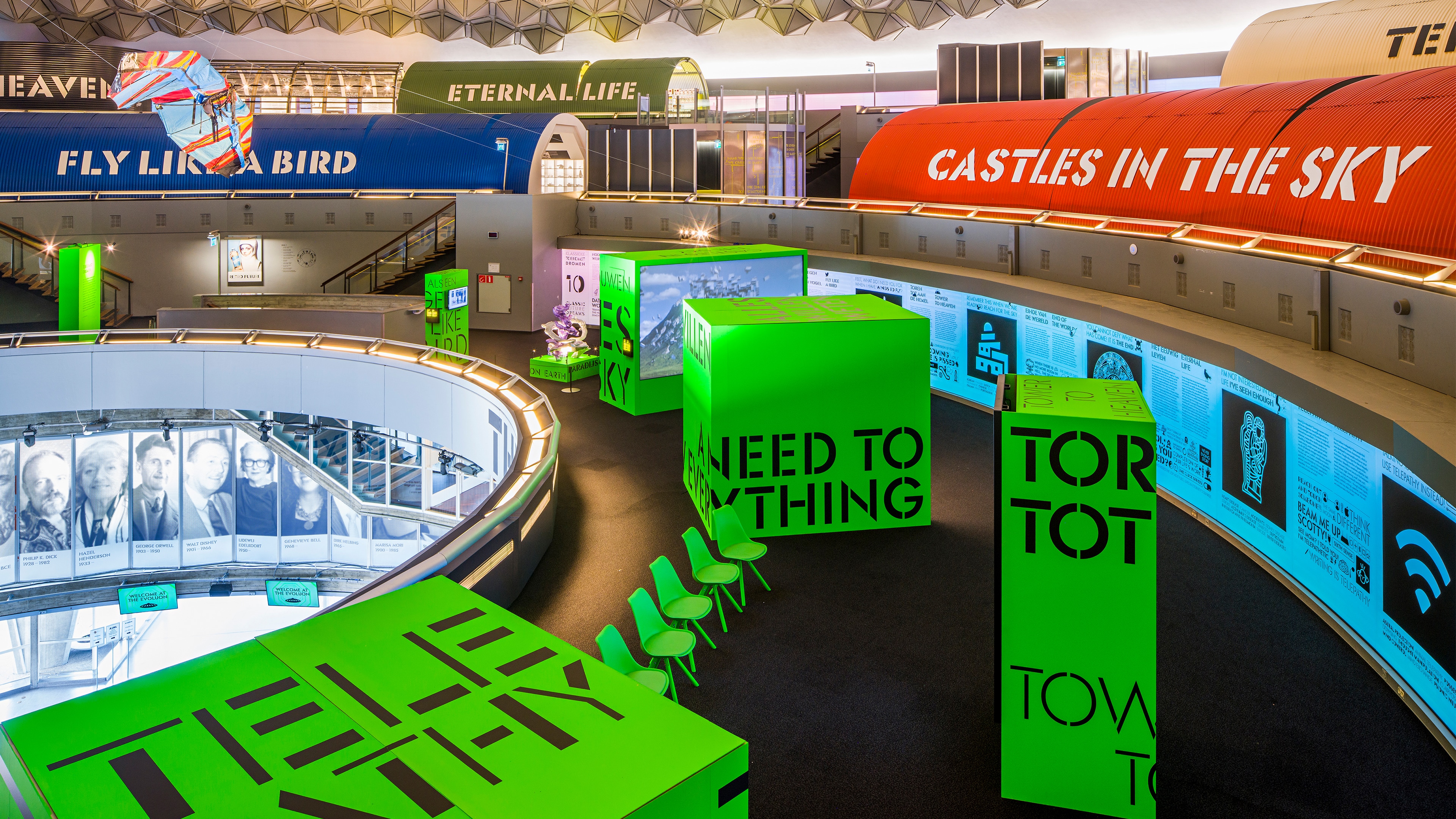 Exhibition design by Niels Schrader (Mind Design), Marco Broeders, Wouter van Dillen and Mieke Gerritzen (Next Nature). Retro Future is an exhibition about the future of the past. Three rings containing an artists exhibition and ten tunnels, asking ten questions about the future. Each tunnel is designed to give an insight to questions such as: 'How do we work?', 'How do we live?', 'How do we travel?', 'How do we communicate?'. For this exhibition I was part of the graphic design and type design team.