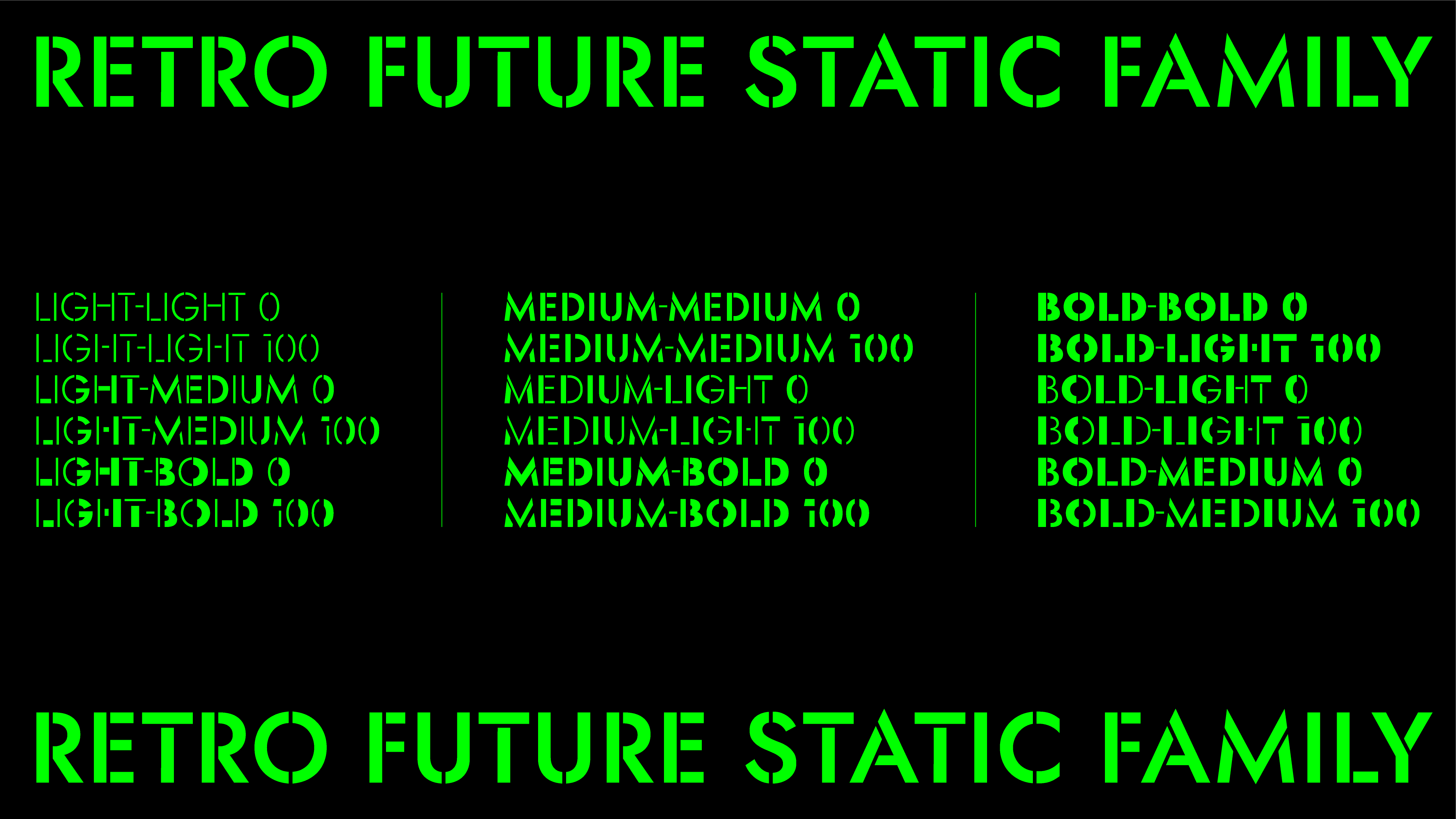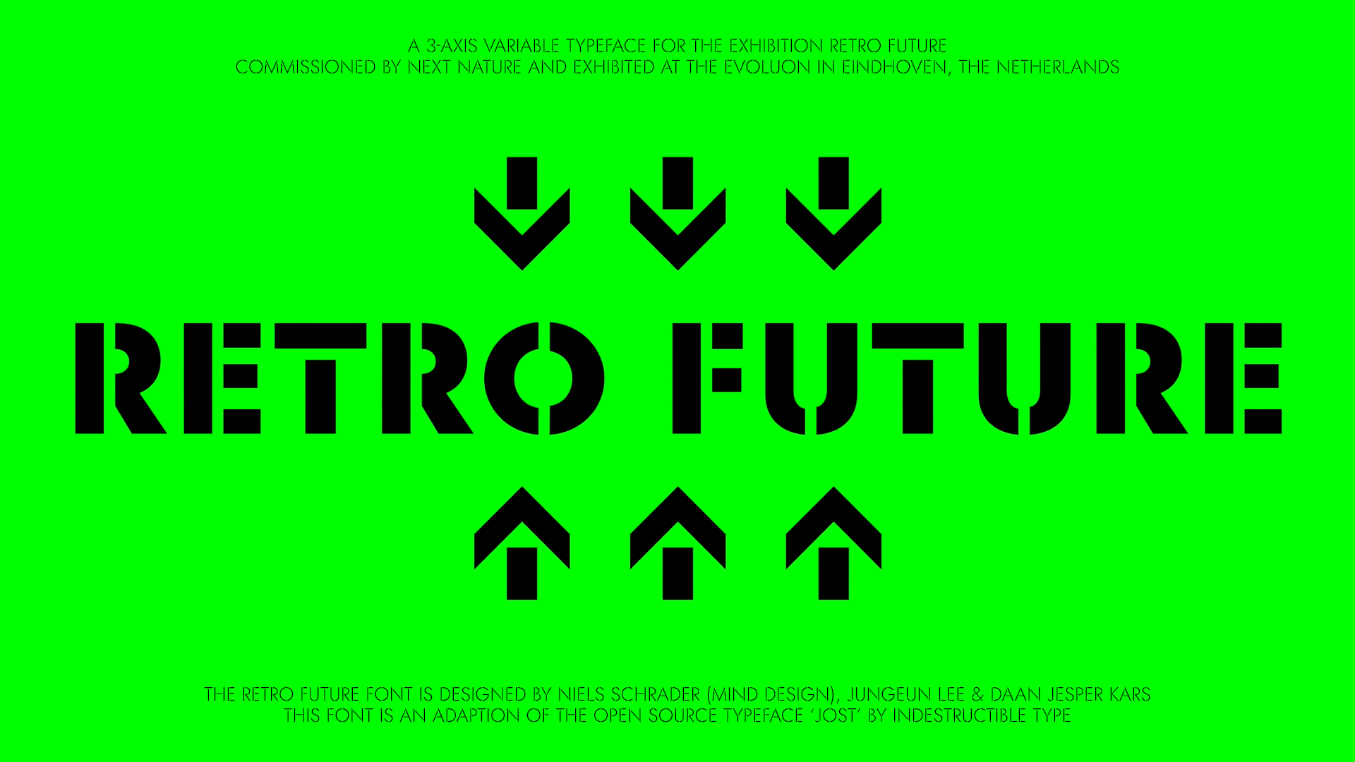 Variable typeface for the exhibition Retro Future in Eindhoven, The Netherlands. Based on the open-source font Jost by Indestructible Type.