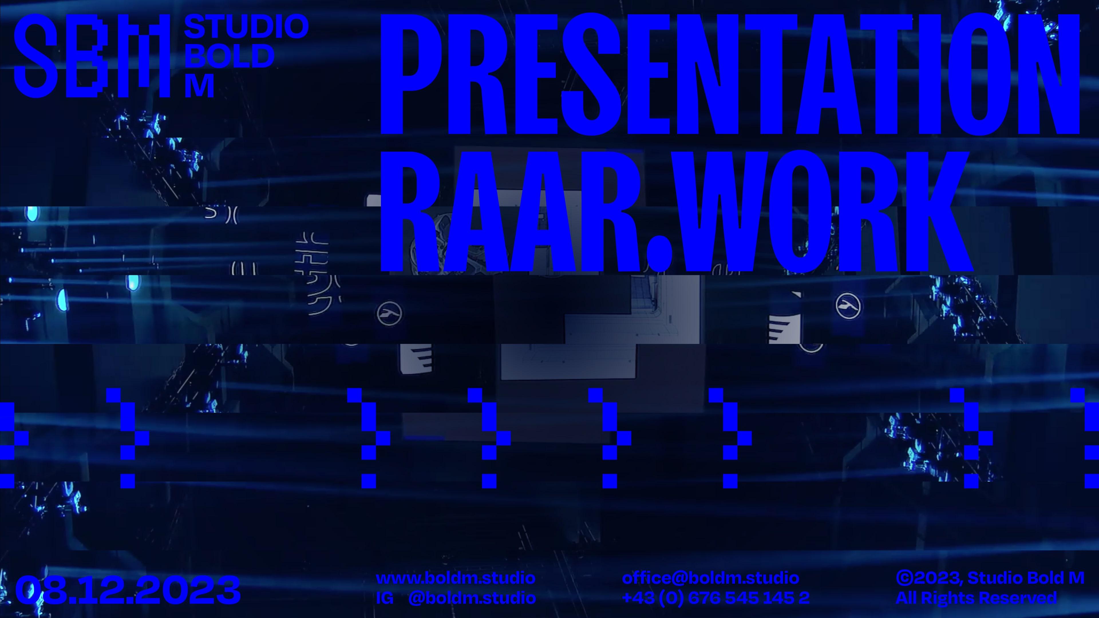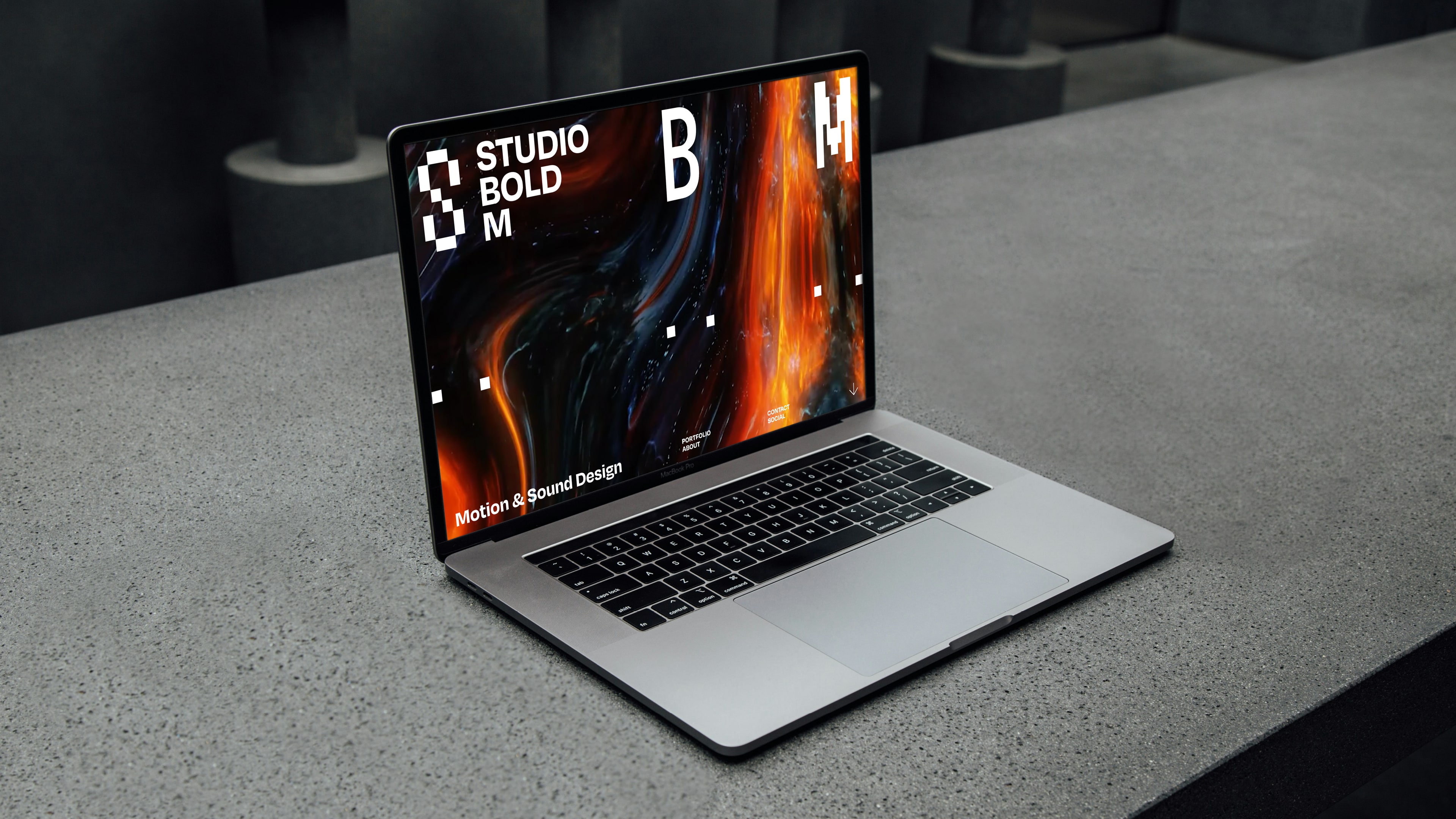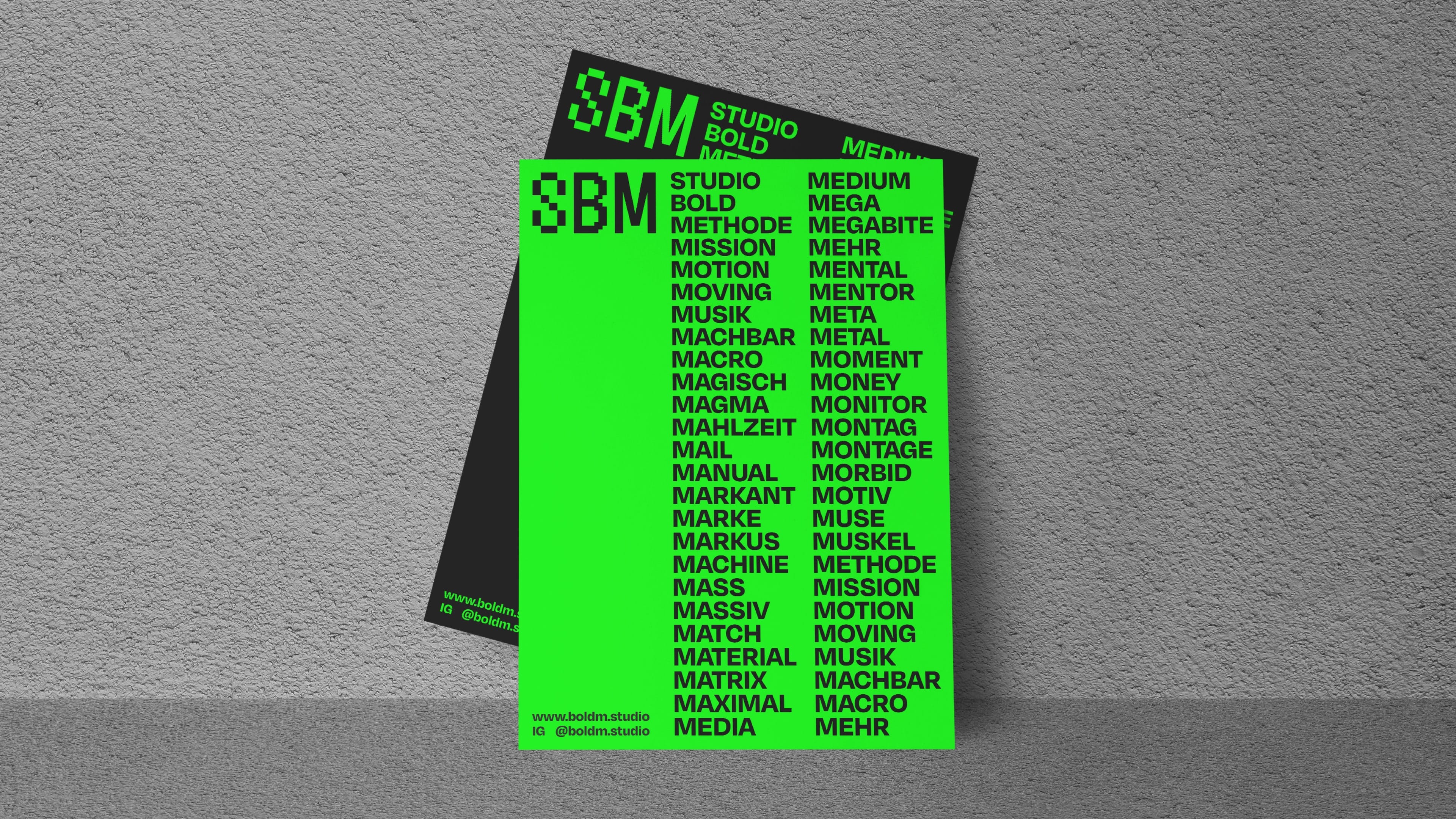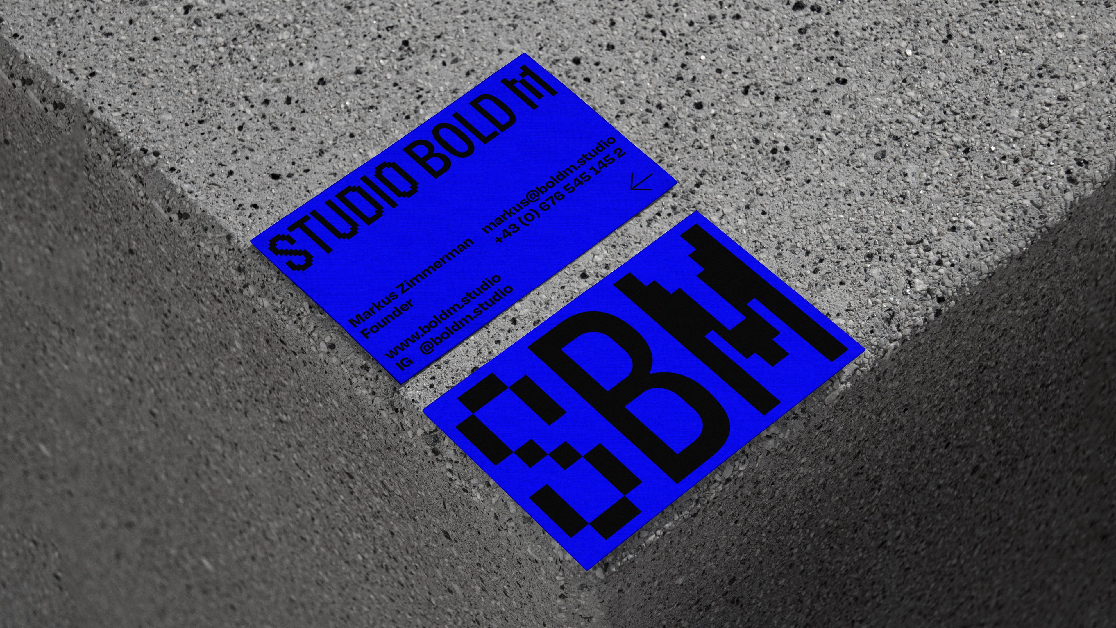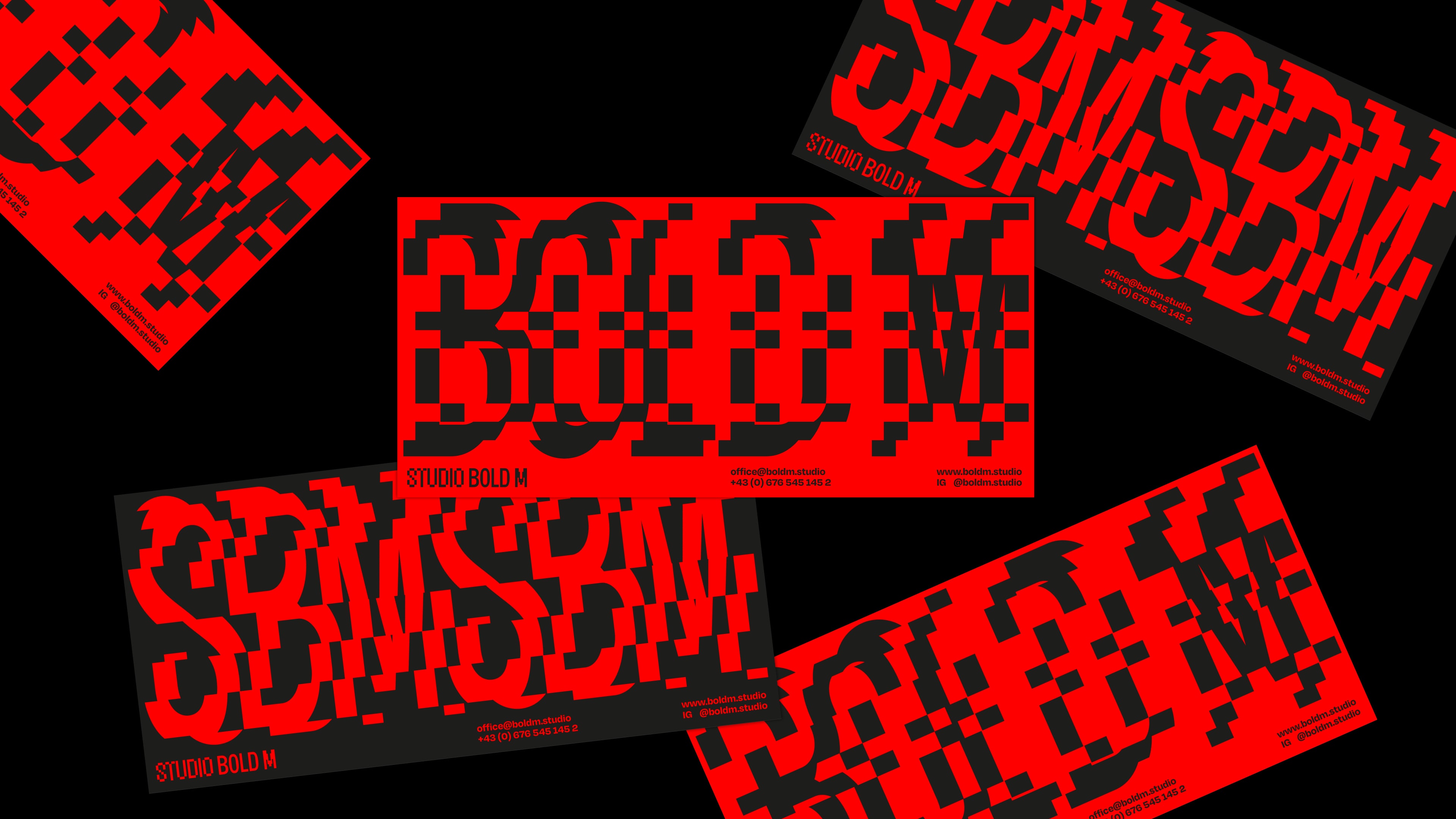 The branding for Studio Bold M focuses on a bold and modern identity that reflects the dynamic approach of motion design. The logo is linked to the rendering process from low- to high-poly, revealing a slight inside of the profession Studio Bold M practises. Using only black, white and RGB colours, the link is made to the digital services the studio offers. From business cards to digital assets, the branding ensures a cohesive visual language that speaks to Studio Bold M's overall aestethic.