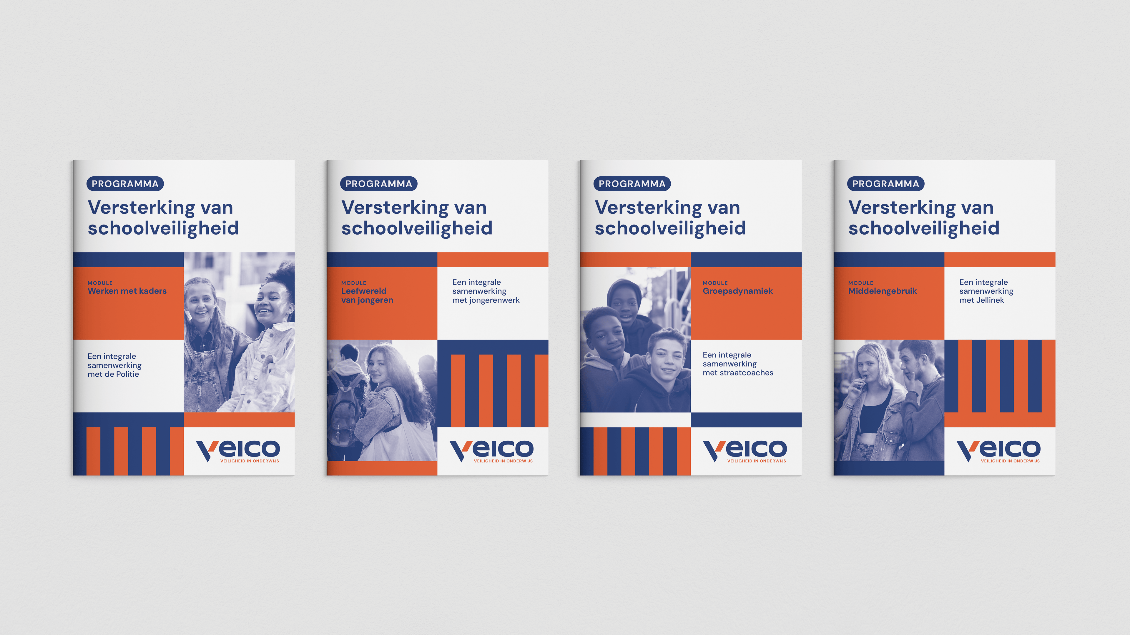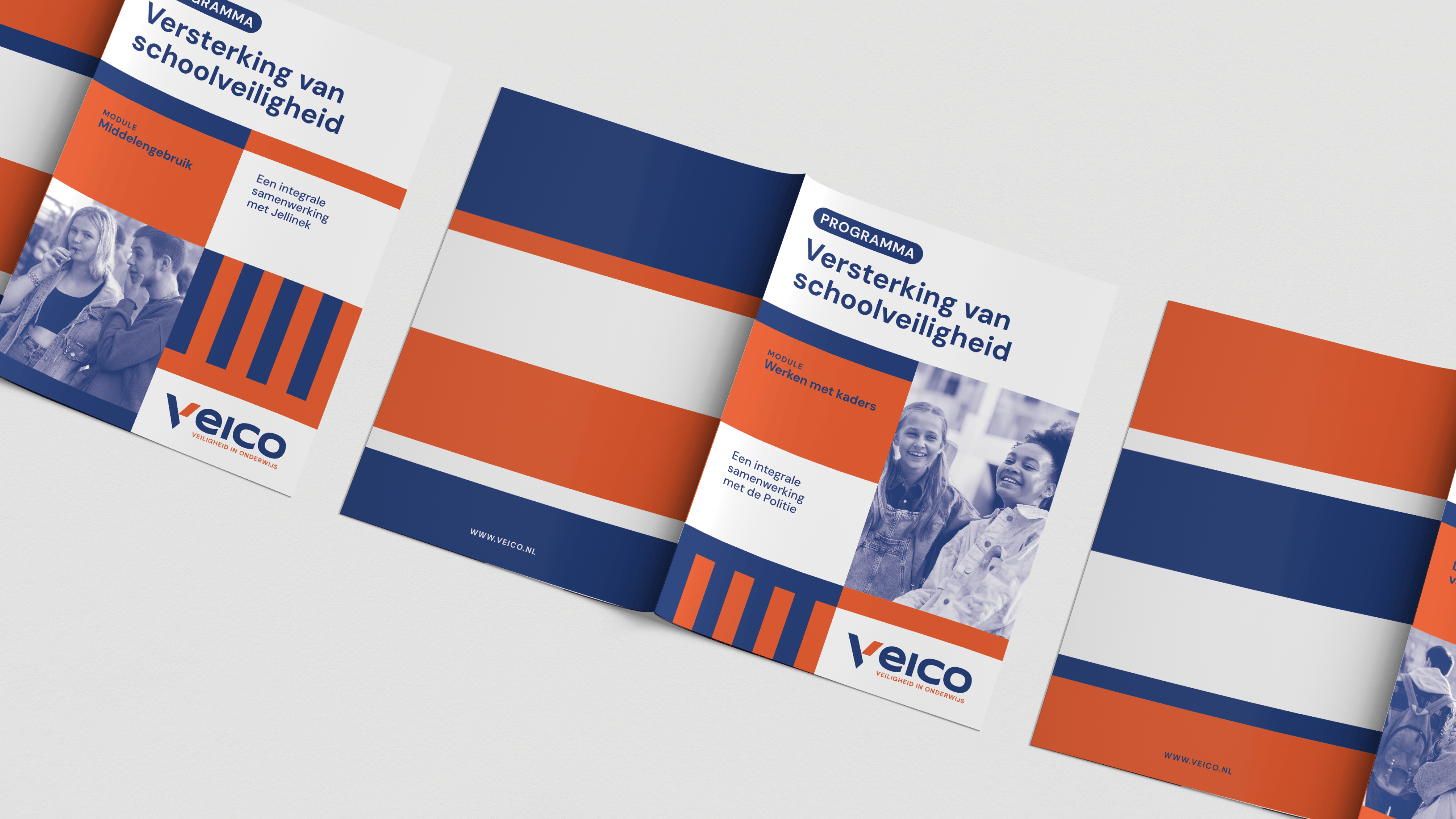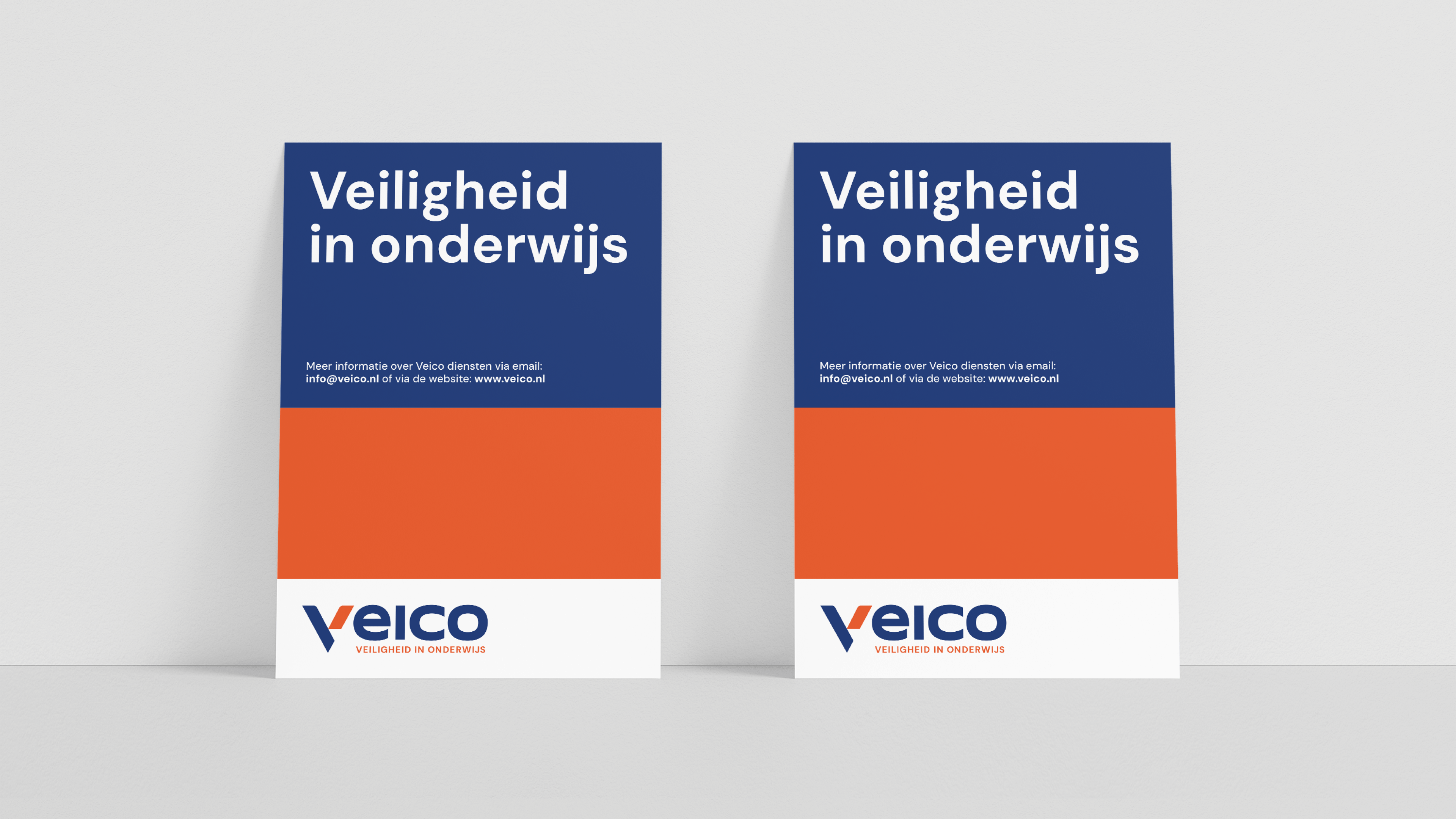 Veico is a company committed to increasing social safety at school. In a world where safety risks at schools are becoming increasingly complex, Veico offers the expertise and solutions needed to effectively address these challenges. The whole branding is defined by two bold colours and sharp graphic shapes. Throughout the whole design, the informative aspect always comes first.