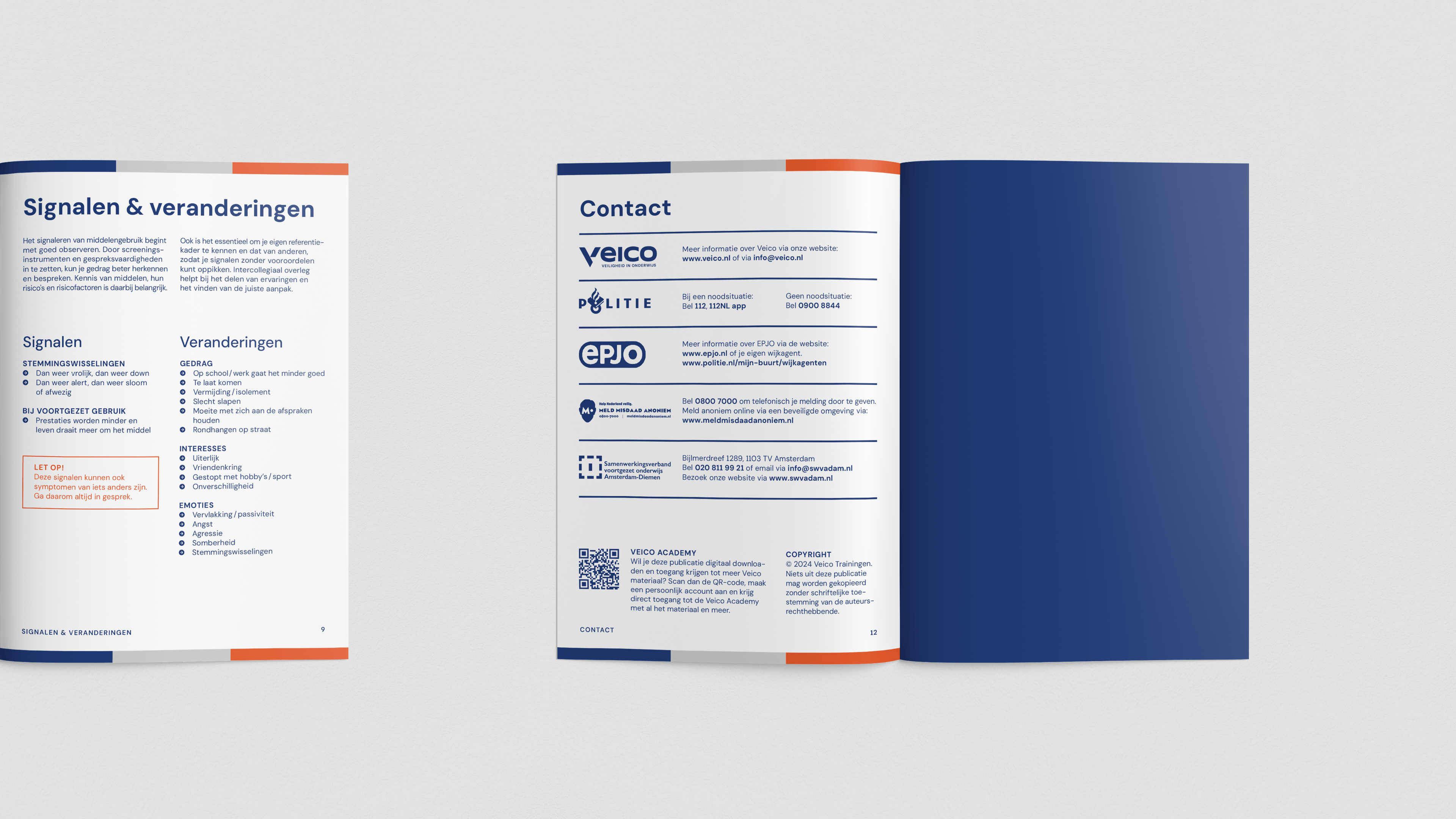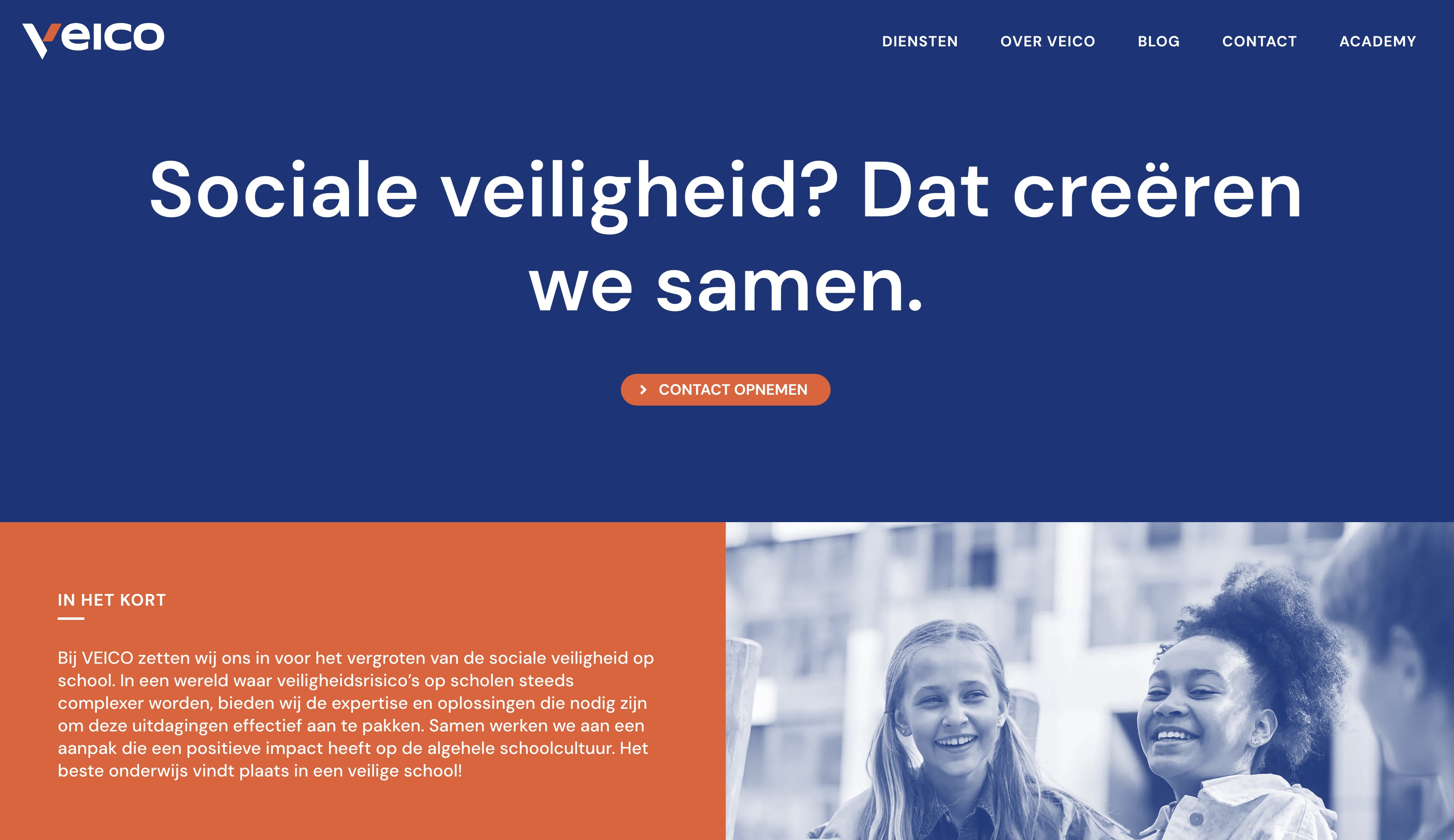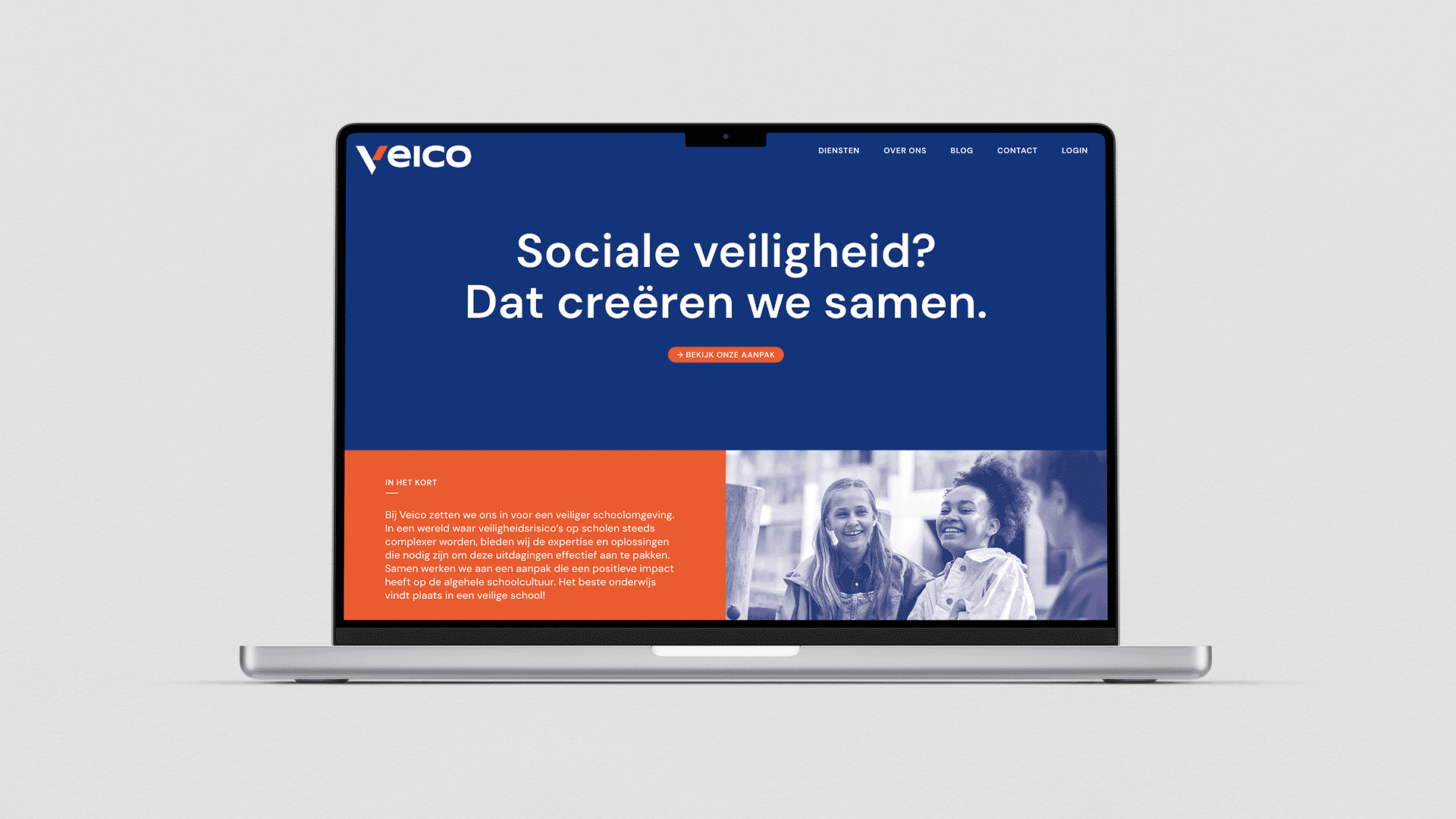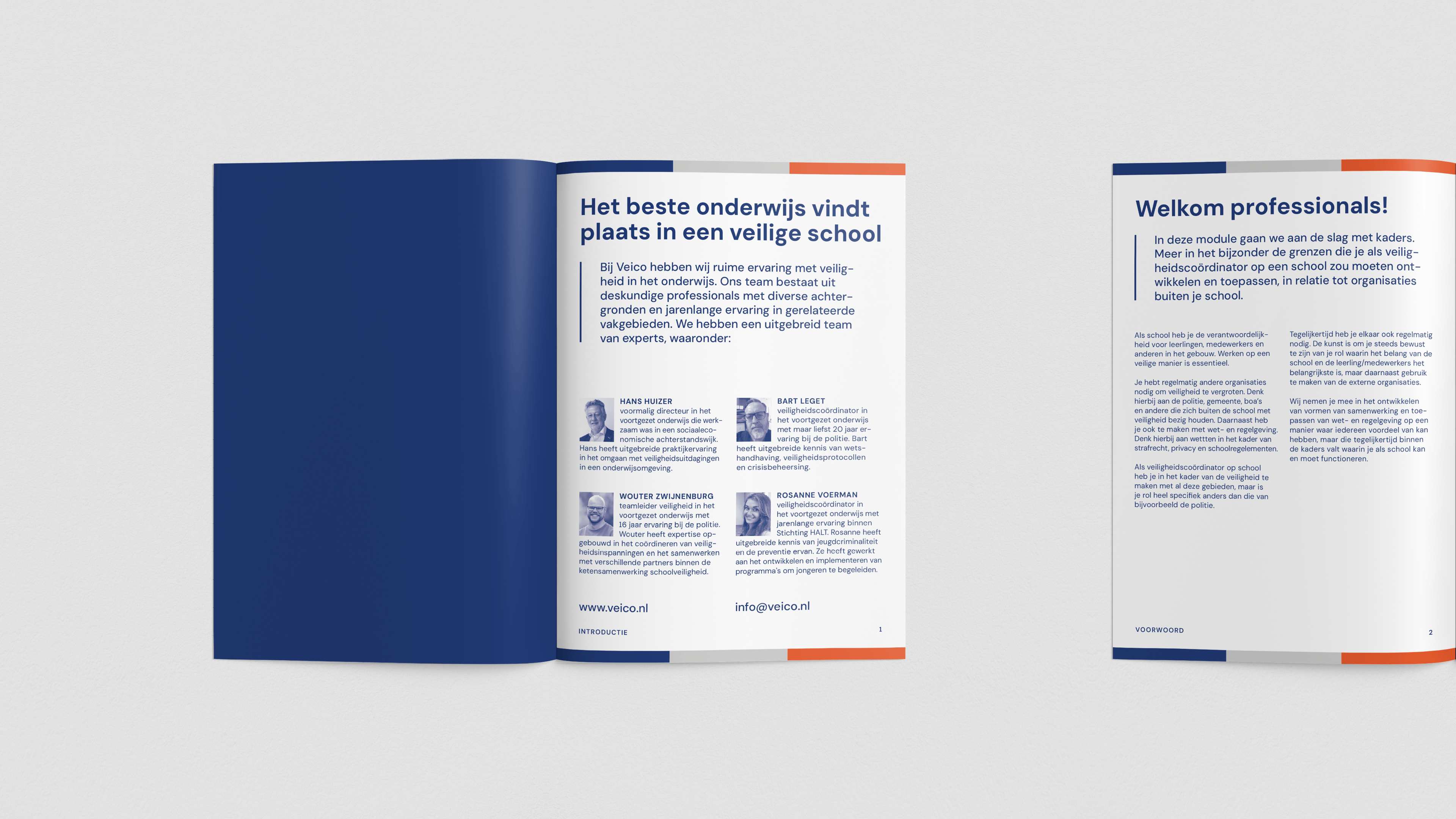 Veico is a company committed to increasing social safety at school. In a world where safety risks at schools are becoming increasingly complex, Veico offers the expertise and solutions needed to effectively address these challenges. The whole branding is defined by two bold colours and sharp graphic shapes. Throughout the whole design, the informative aspect always comes first.